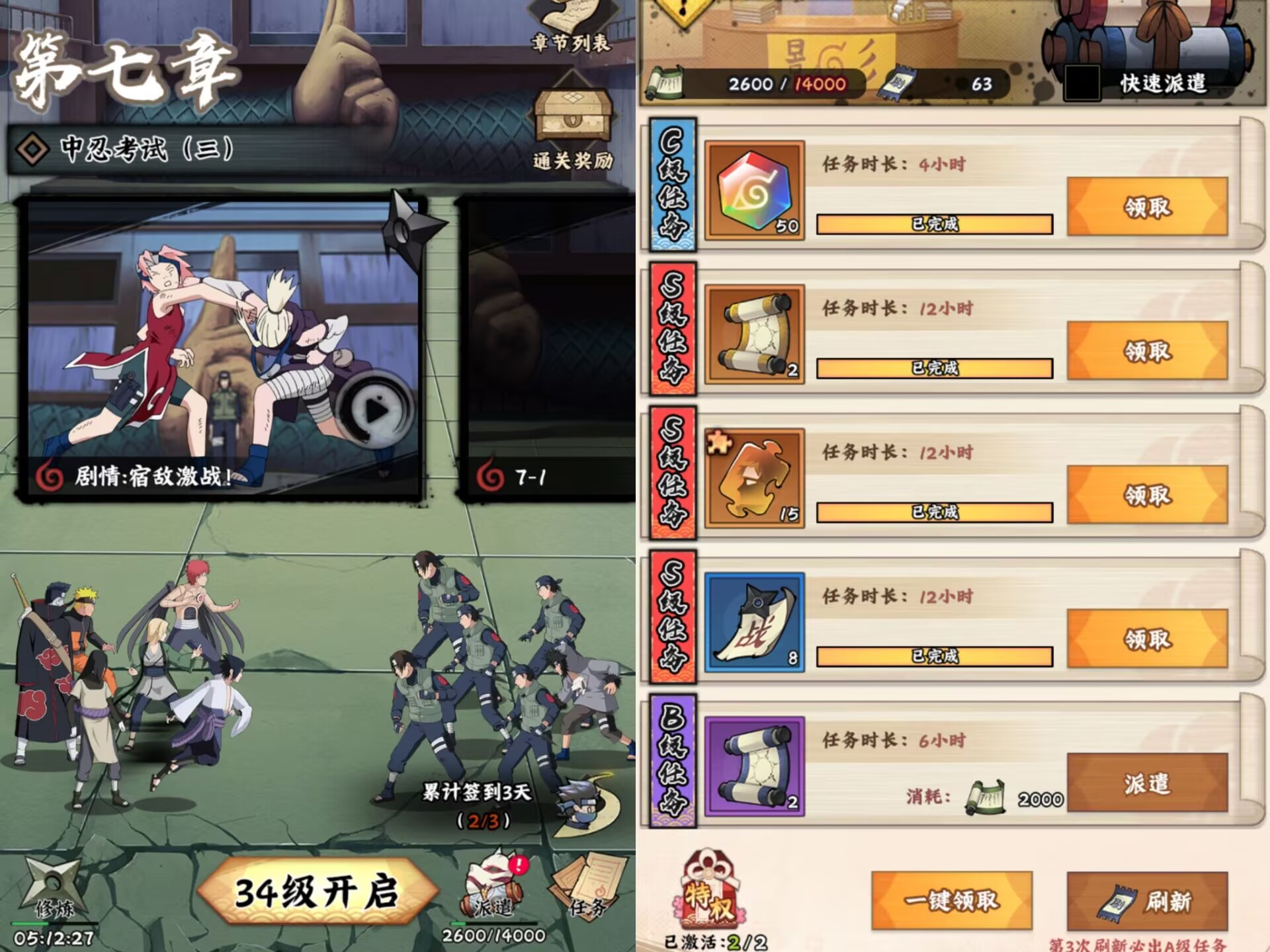 3:【派遣】仍然选择:忍币、进阶书、高抽、福引卷等核心资源。进阶书要留意一下!因为后面真的很缺!刷到有进阶书的任务直接无脑领即可。