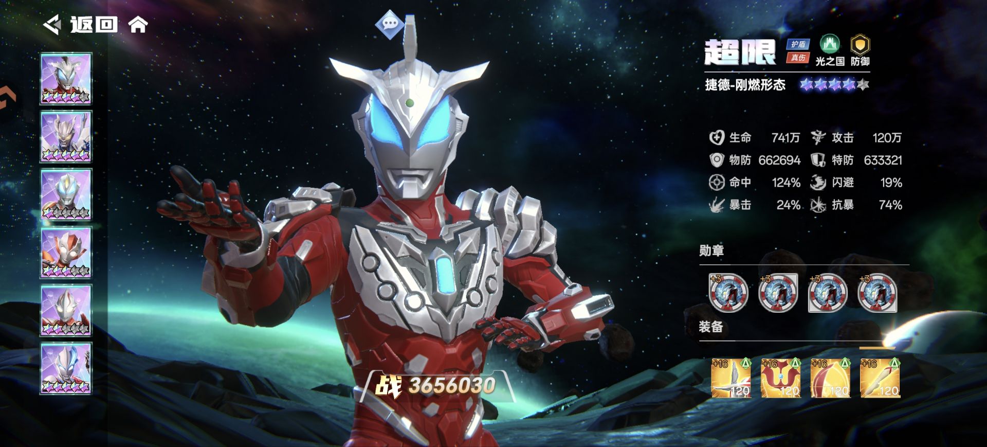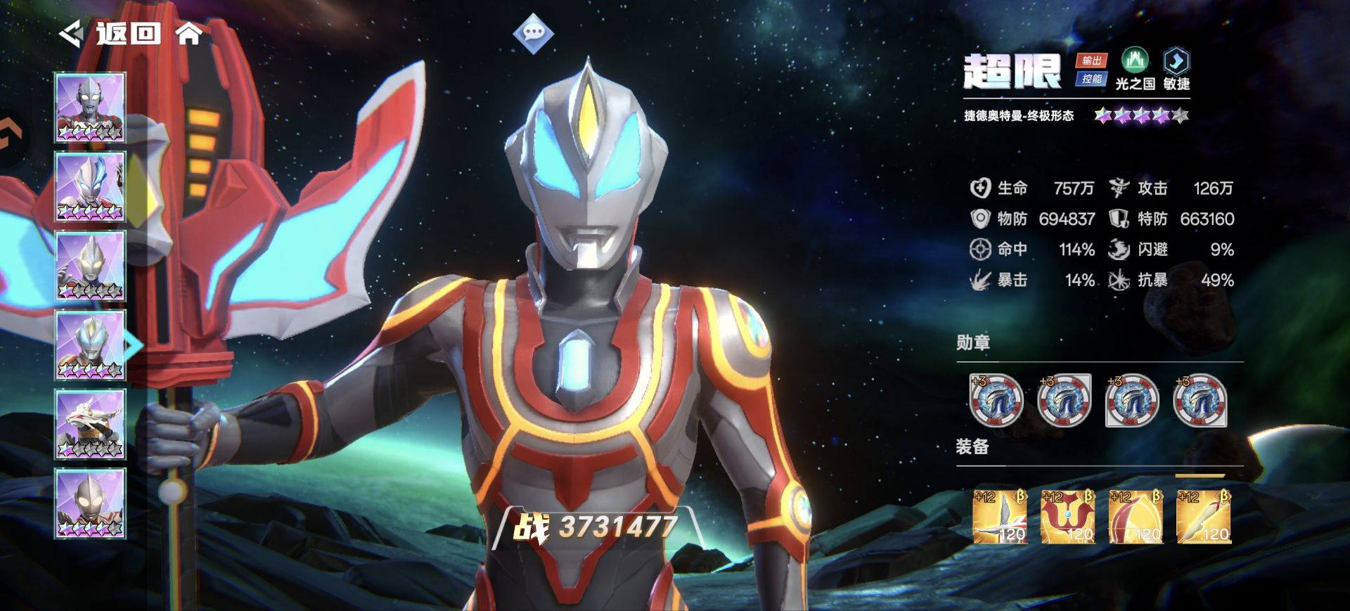 直接进化成【究极赛罗】【刚燃捷德】基本对平民玩家来说用到后期是没问题了。