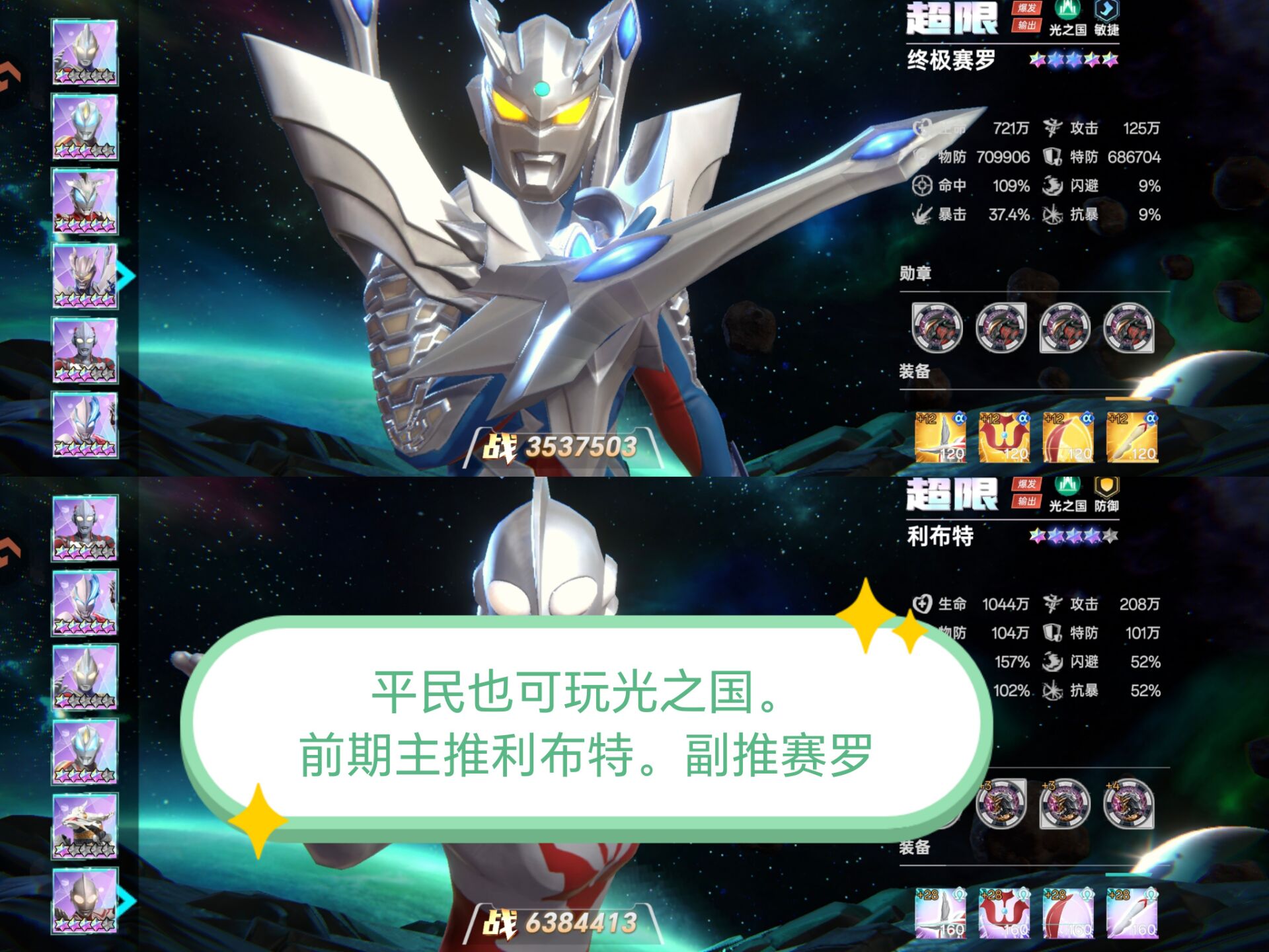 因为之前开荒阶段出的光之国攻略没有说详细考虑到有玩家需要完整的光之国阵容的攻略。所以本期给大家详细讲解和分析光之国阵容。