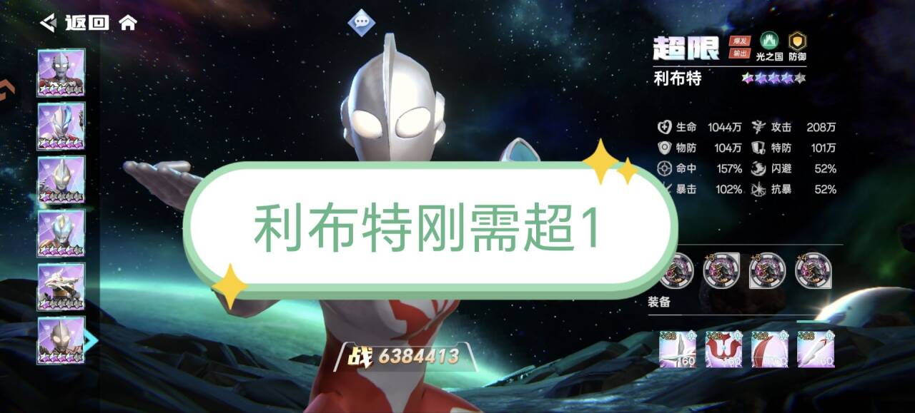把【利布特】培养到超1星以后!配合赛罗阵容基本就可以走近正规了!