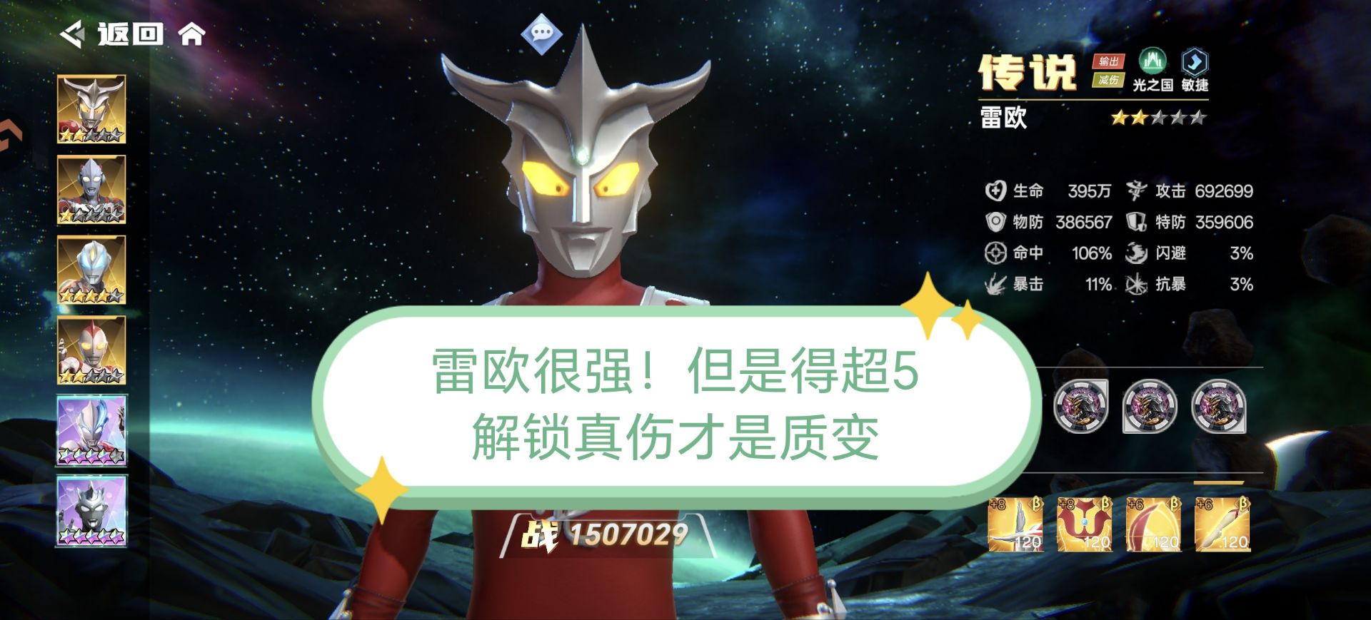 像利布特、雷欧需要高星超限才有比较好的提升!光之国很多角色都需要高星,前期走的会比较慢!不像怪兽阵容!一个大蛇高星就可以玩的很舒服。