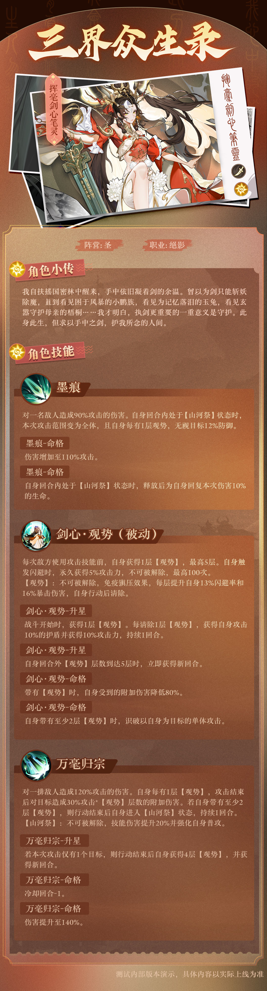 剑心柔锋,是她复生的归途,更是她守护的真意。新版本将至,执剑的守护者「挥毫剑心笔灵」即将降临,以剑光织温柔愿念——剑可裂风定澜,亦可抚羽慰泪;这一次,不为斩尽妖魔,只为护佑眼前心跳。