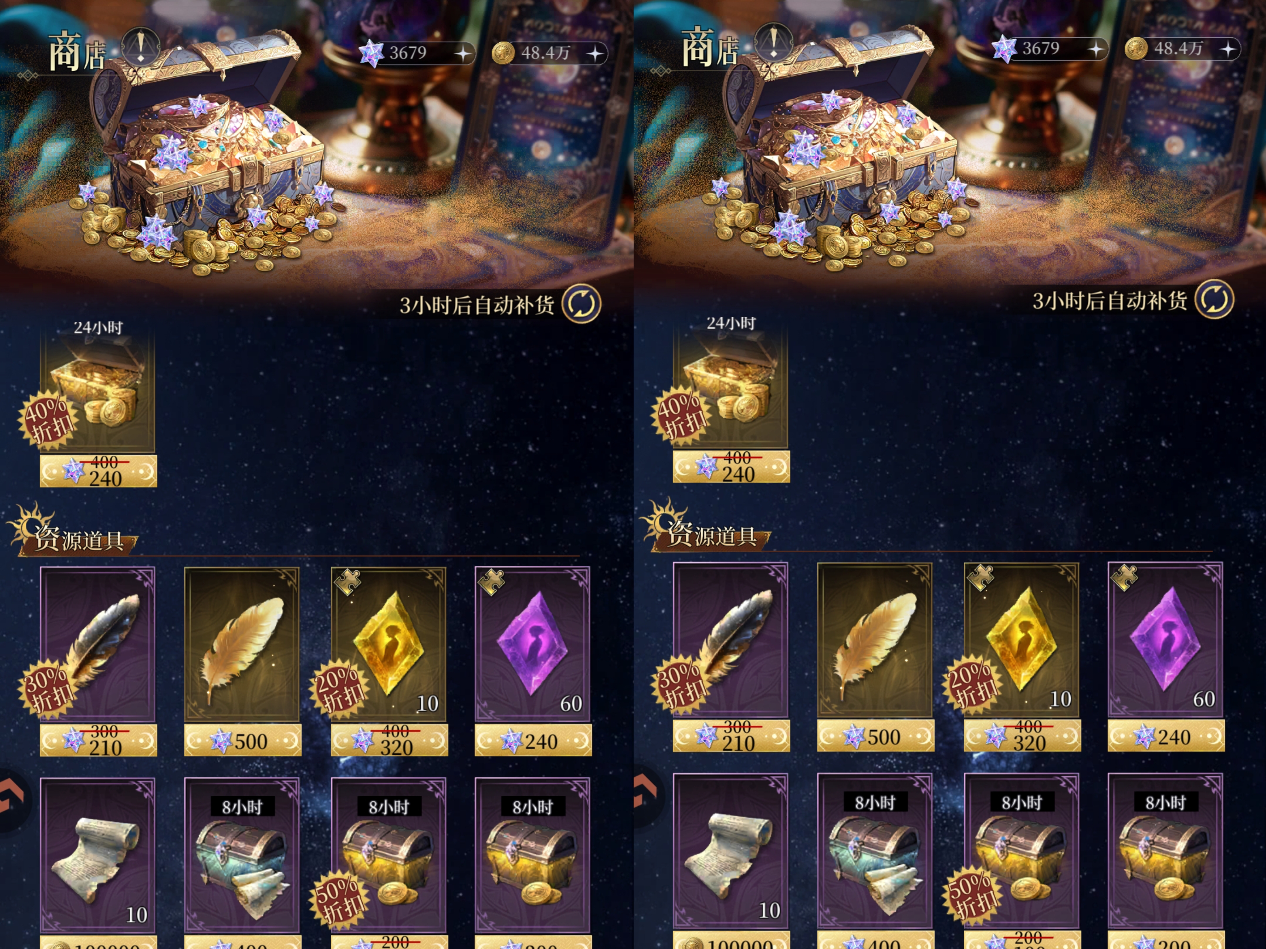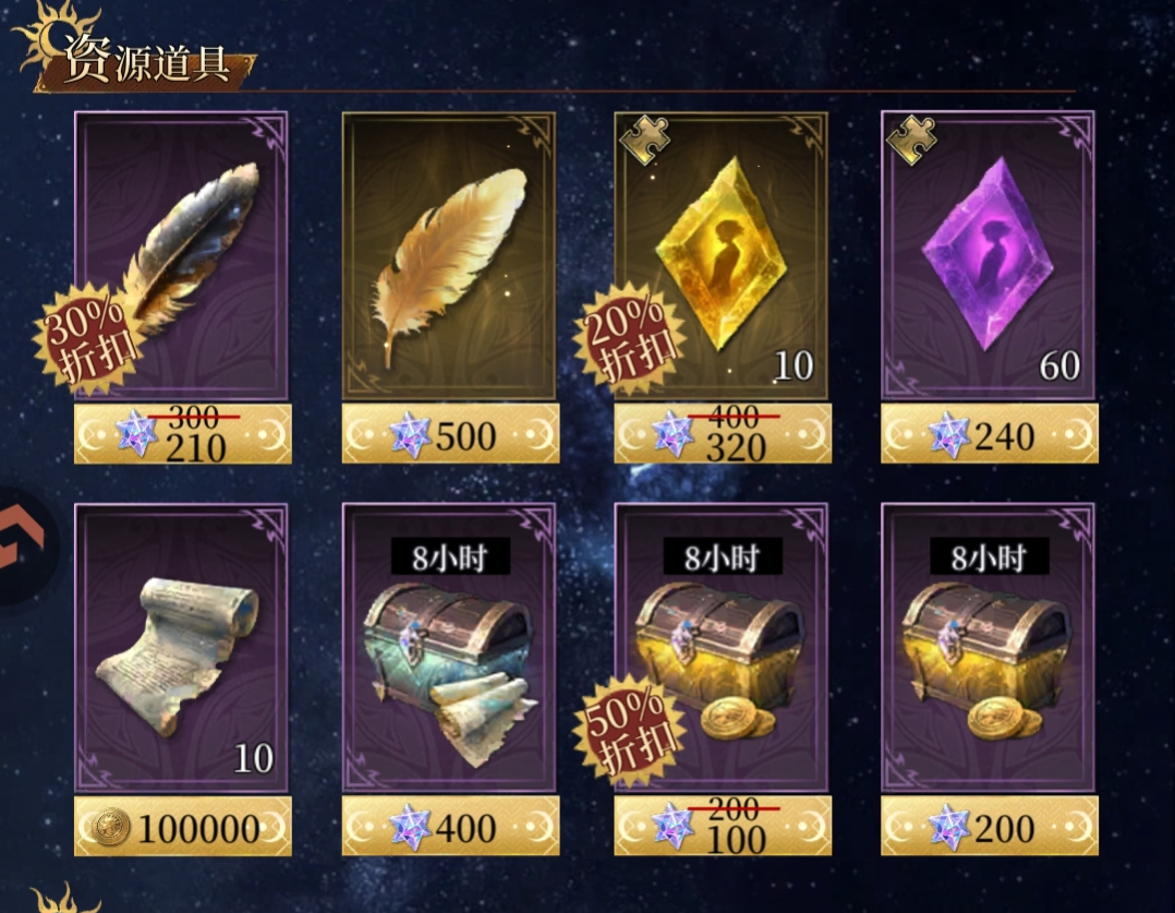 ①折扣的小时金币箱子、小时进化诏、小时经验都是可以优先买的,性价比很高。