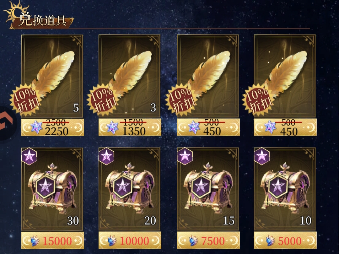 ①优先兑换:折扣的金羽(我们抽阵营的核心道具)
