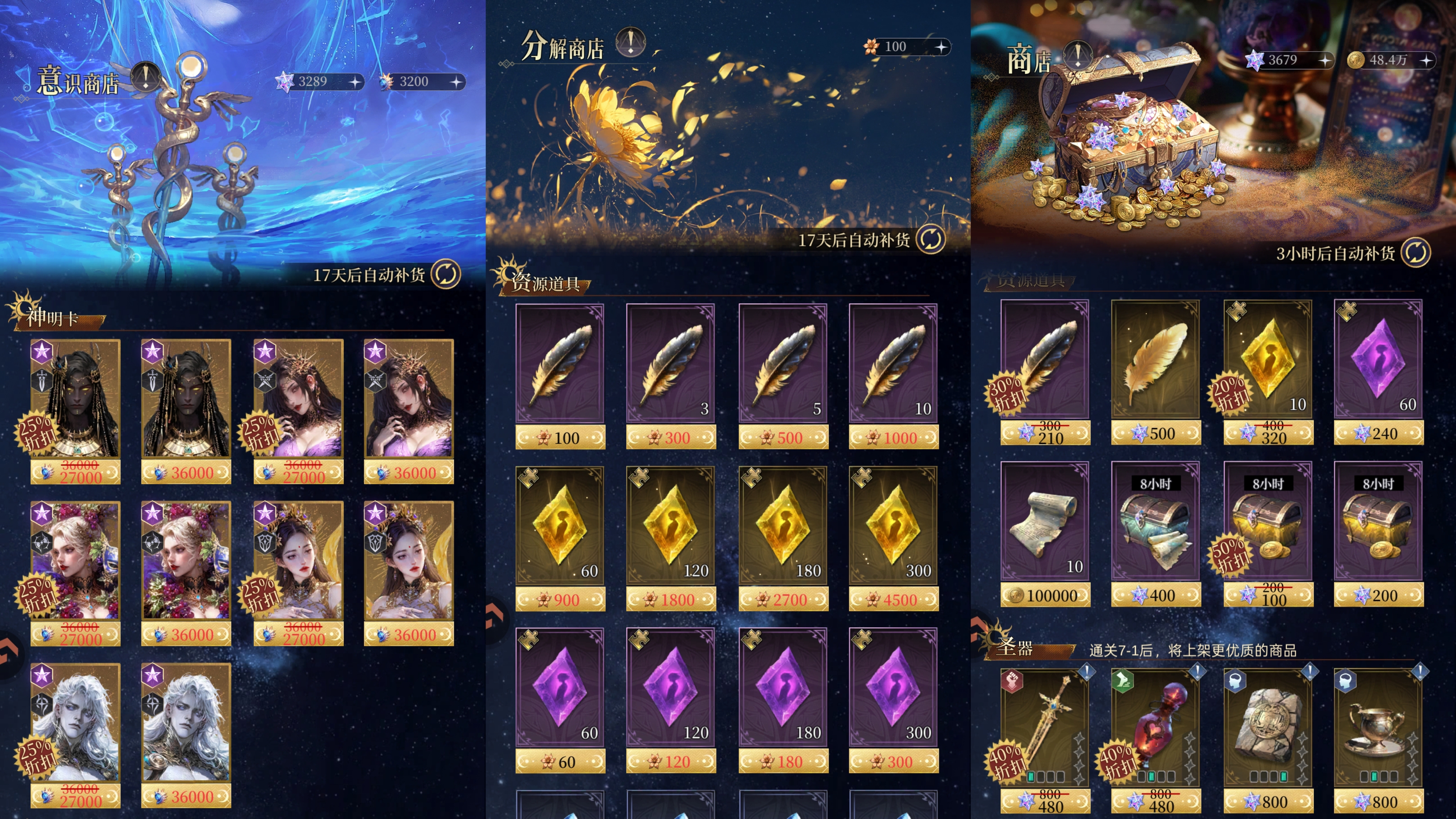 大家可以根据自己的阵容需求,在这里优先兑换这三张神明卡。
