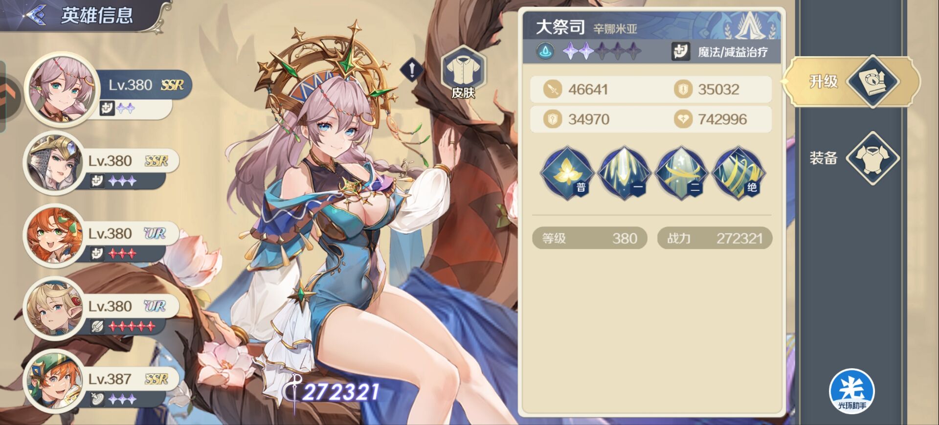 二:【女武神】阵容搭配思路推荐(无贞德版本的低配阵容)战斗大师+白银女王+女武神+巴尔+大祭司。