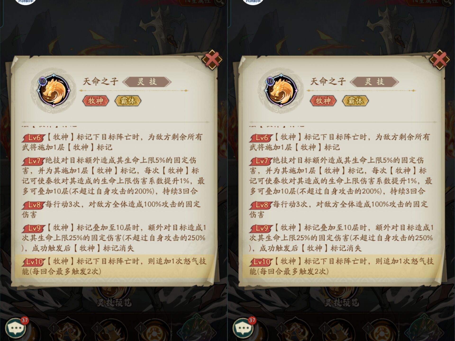 ②9-10级大幅度提升牧神标记的效果和固定伤害,让秦牧输出最大化。