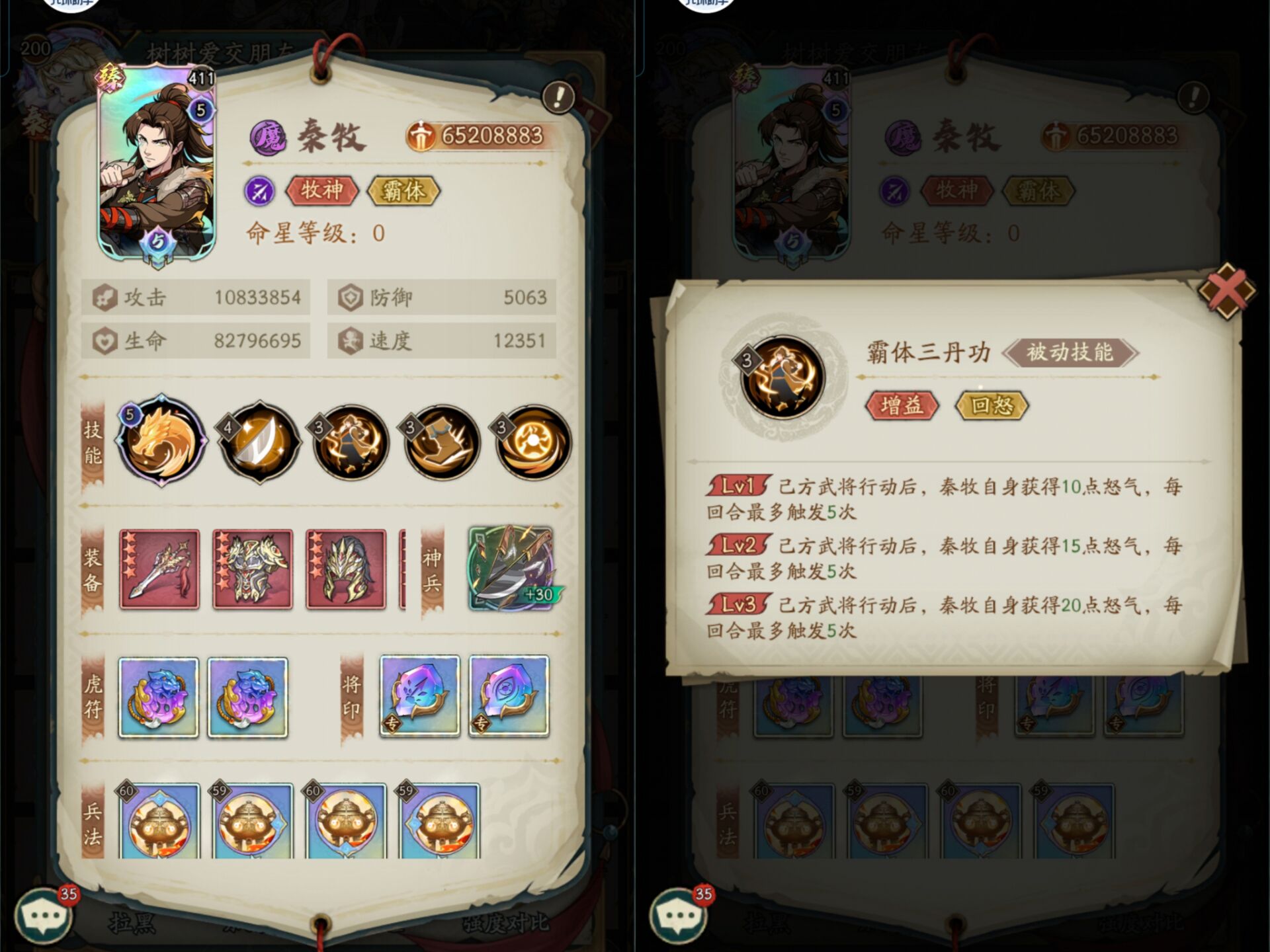 这个就是我方武将行动后:秦牧可以提升20点怒气,每回合最大可以触发5次。