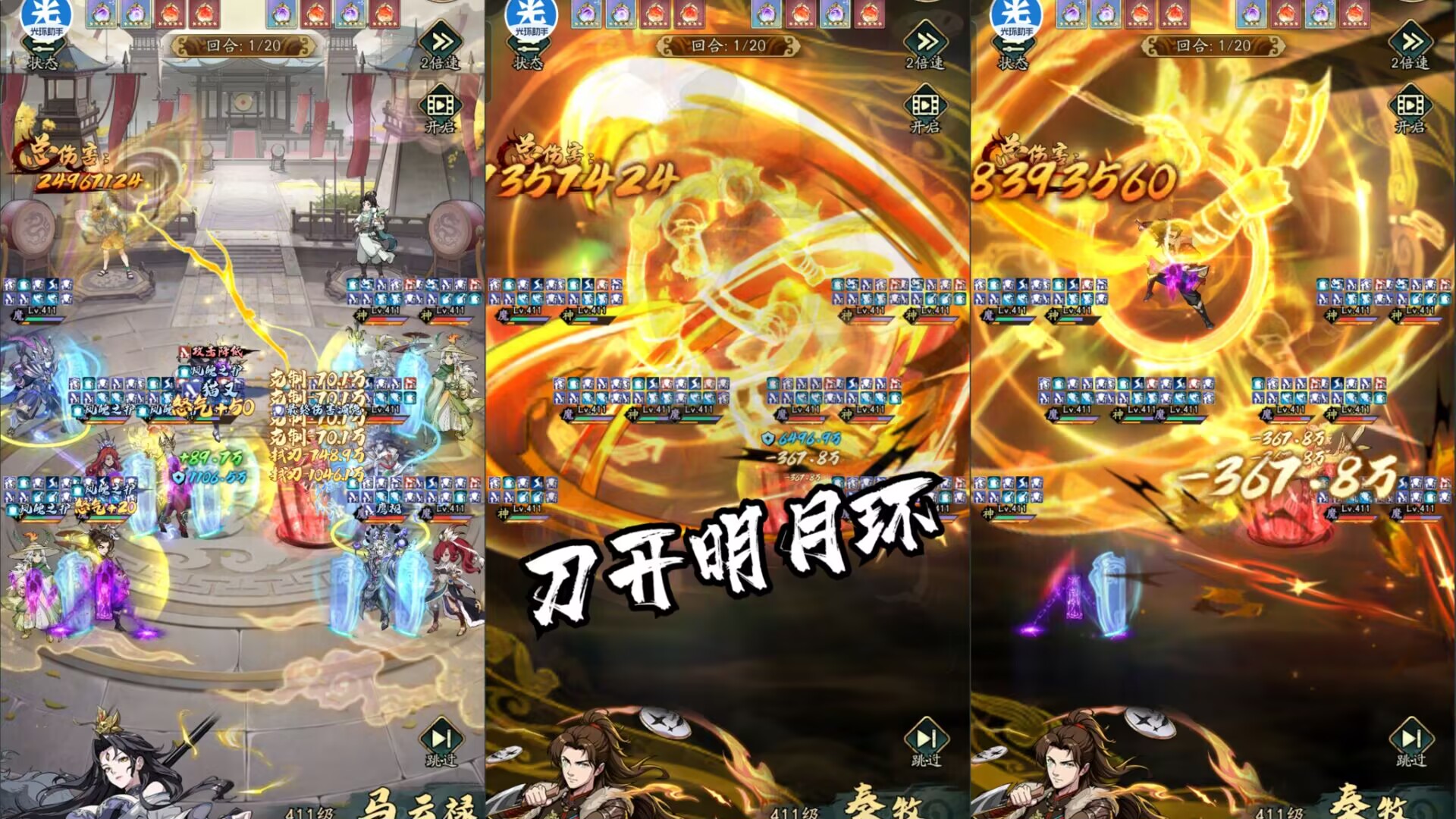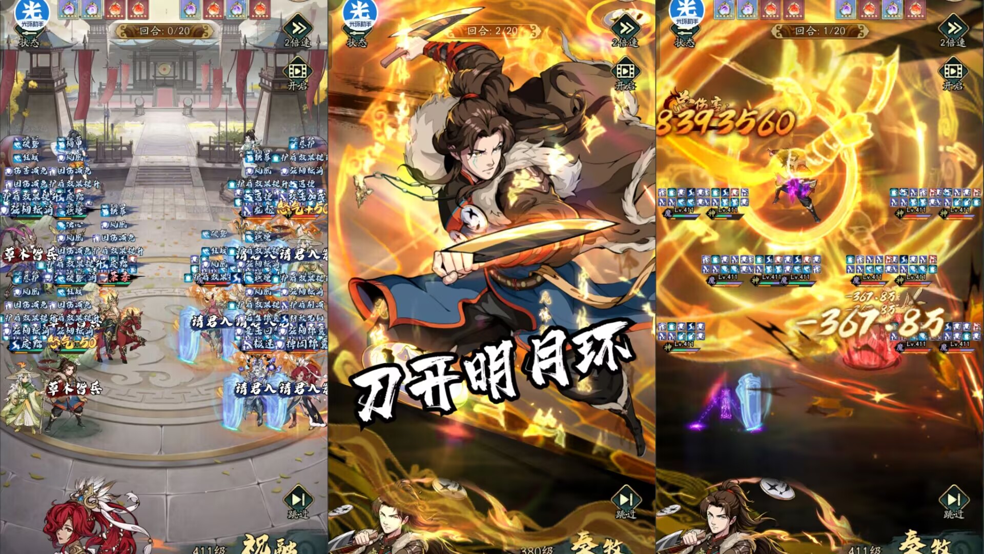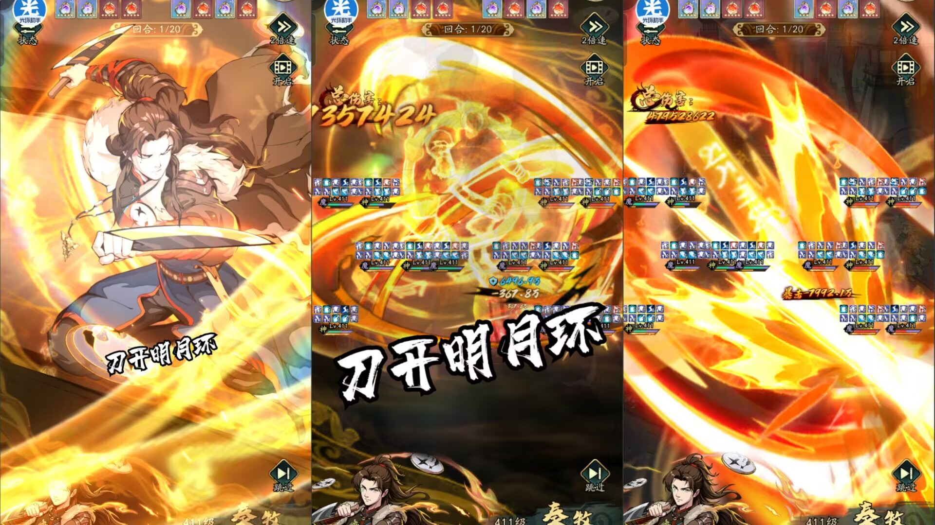 1:【怒气技能】刀开明月环。