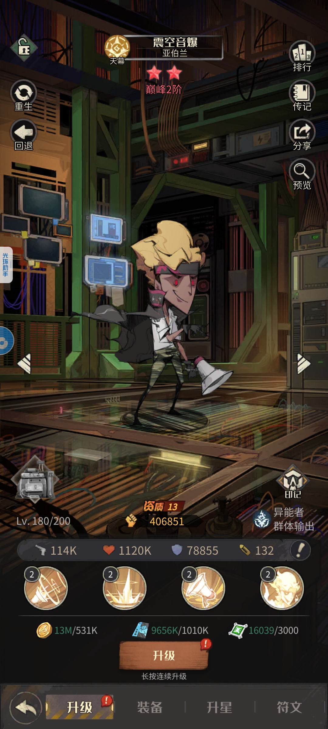 天幕,输出位,天赋数值为13的输出角色,主要亚伯兰的前三次普攻以及所有技能都是群攻,所以亚伯兰能攻击到后排角色,能尽快让对方低级一点的角色残血甚至造成减员。