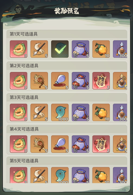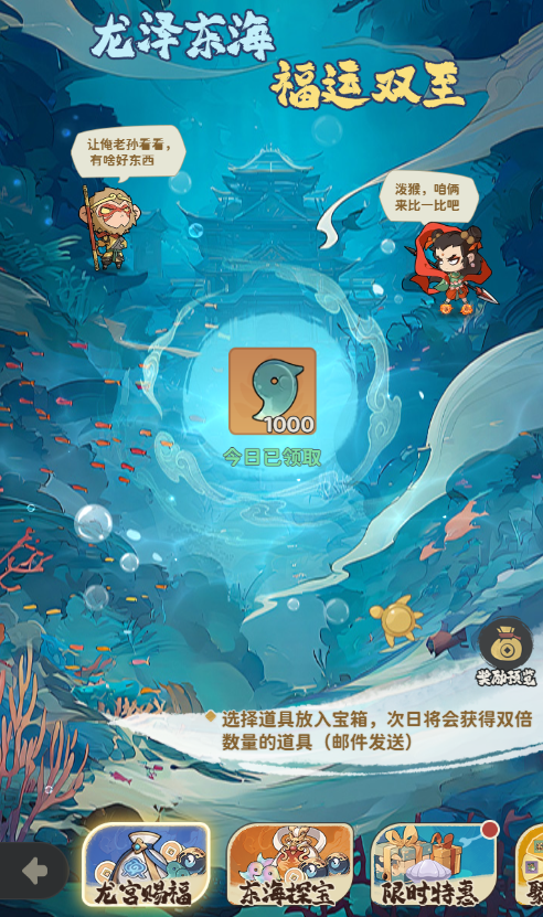 选择道具放入宝箱之中,次日将会获得双倍数量的道具~