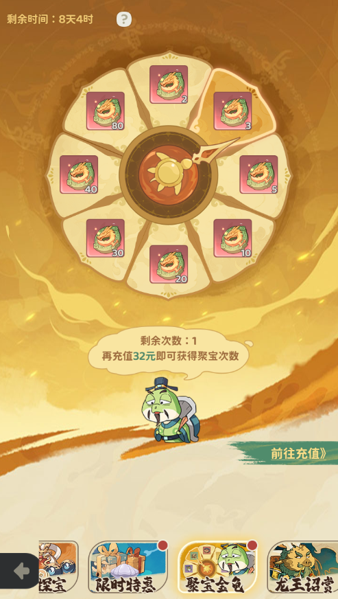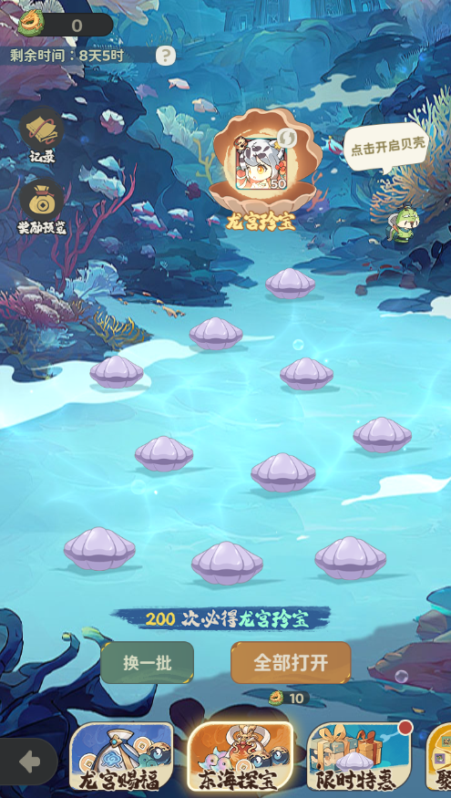 各位天命人通过购买或获取到的【龙宫通宝】在东海探宝中进行抽奖!奖池包含新守护-白虎及其他豪华大礼供你抽取哦~![]()