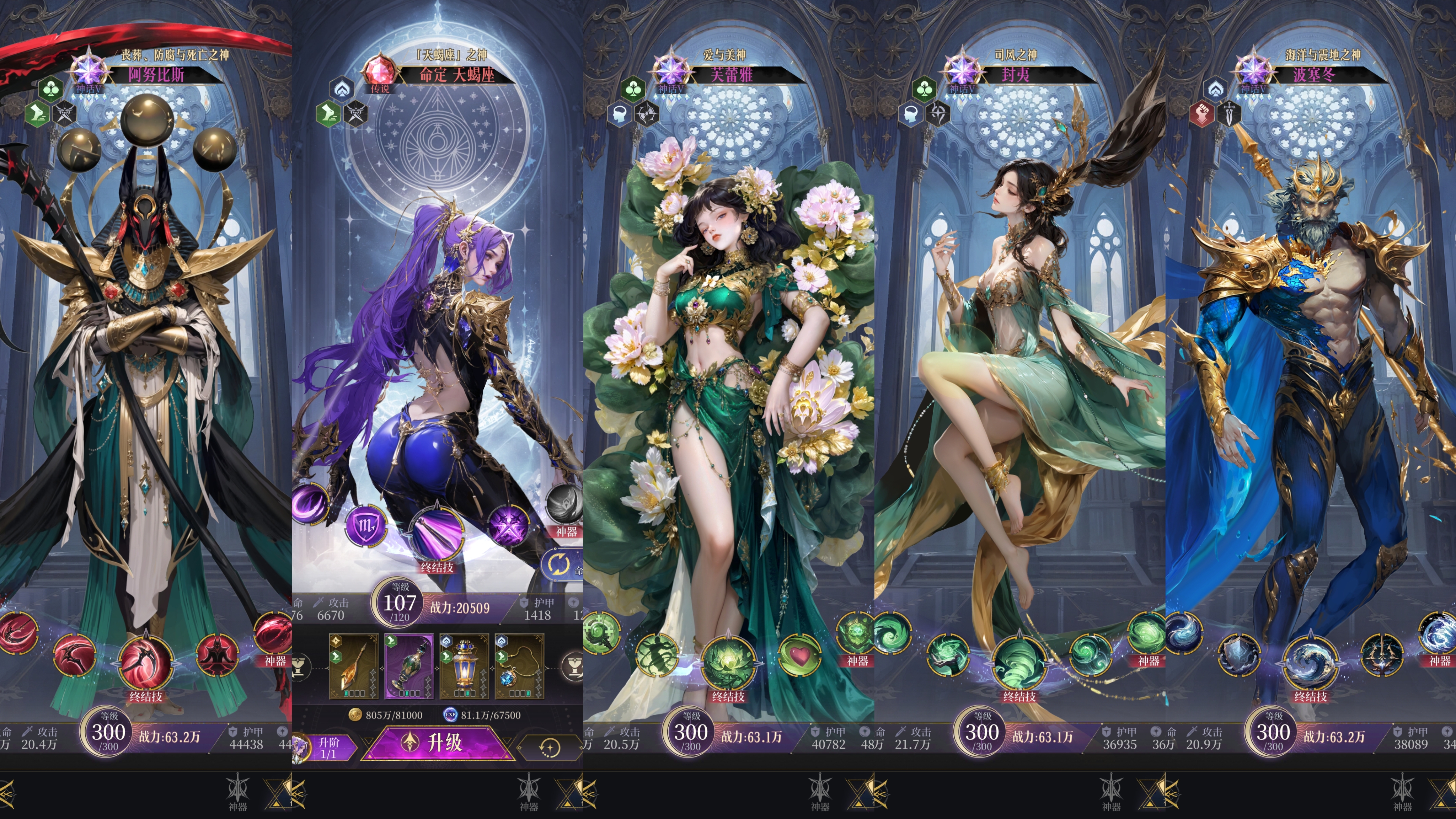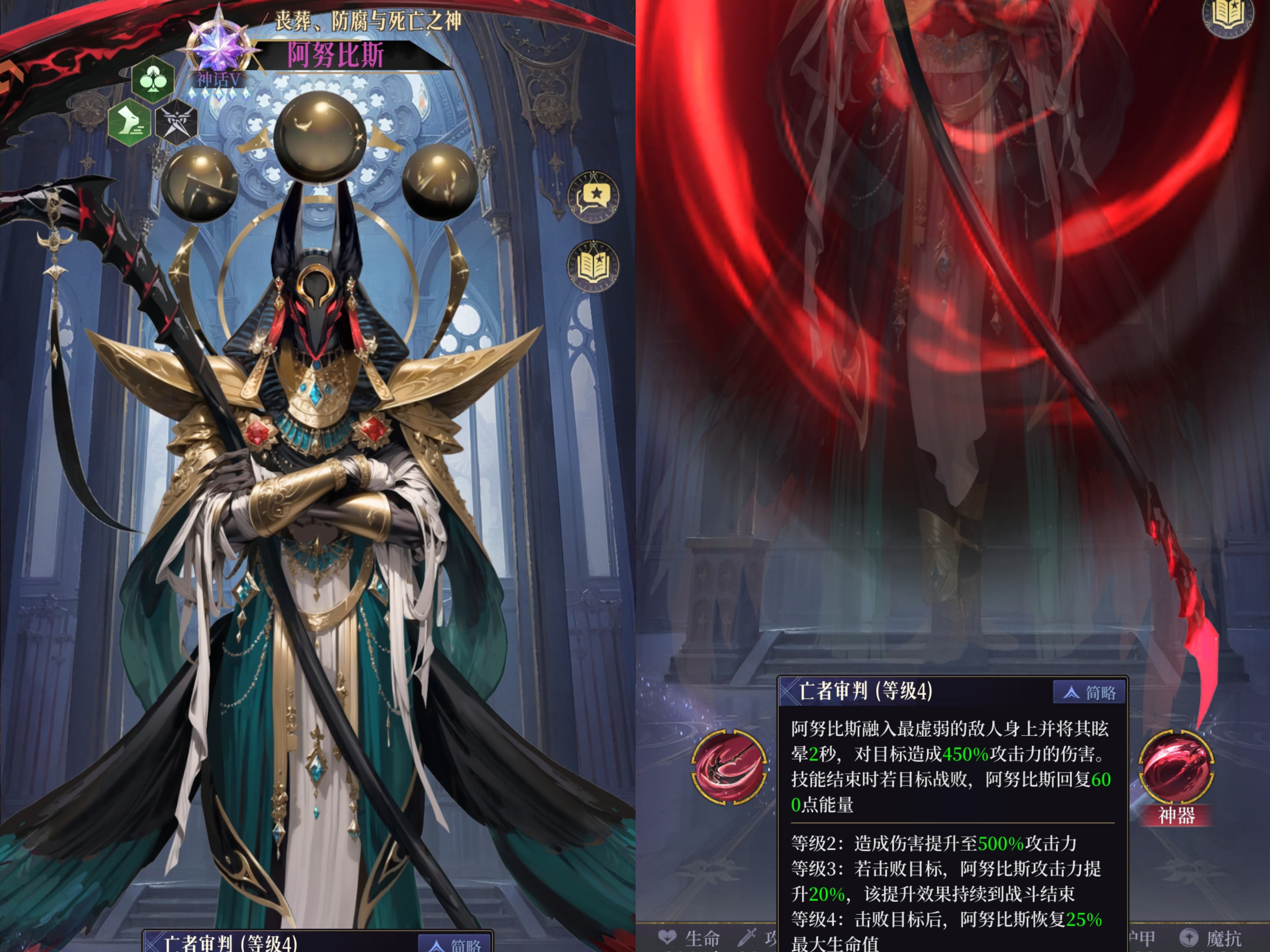 ①阿努比斯:能够优先锁定最虚弱的敌人造成高伤害+眩晕,并且对残血敌人有额外的增伤,自身也有保命机制+吸血效果,配合天蝎和凤夷能够很好的击杀敌人,充当阵容的残血收割机器