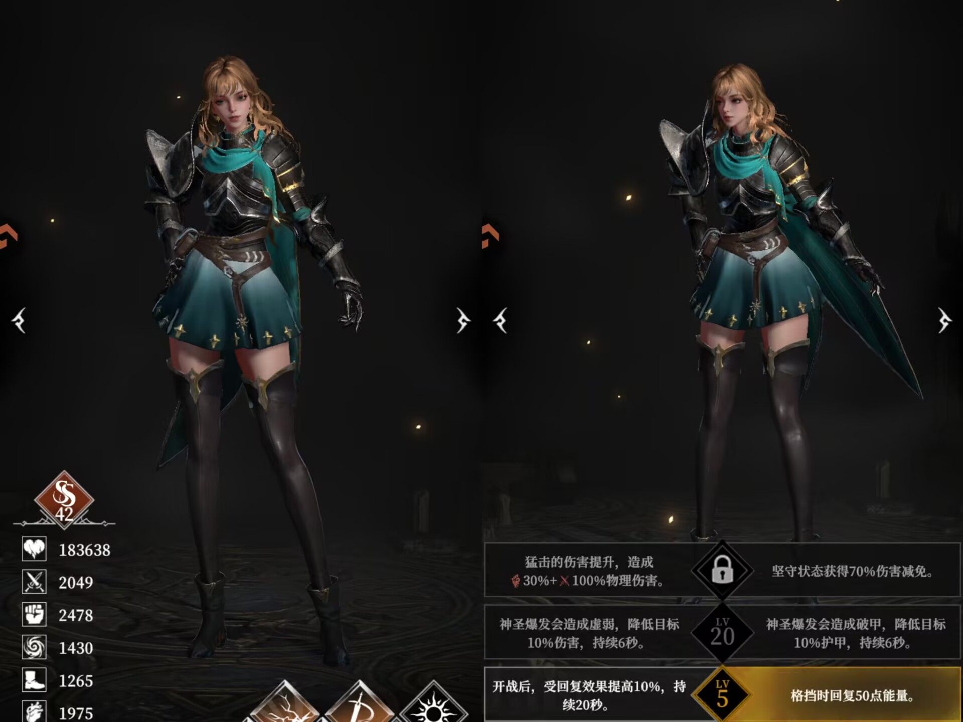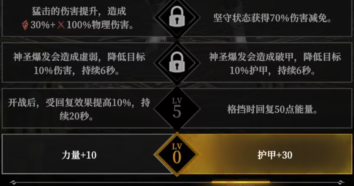 解析:护甲+30、格挡回能这两个是基础必备的