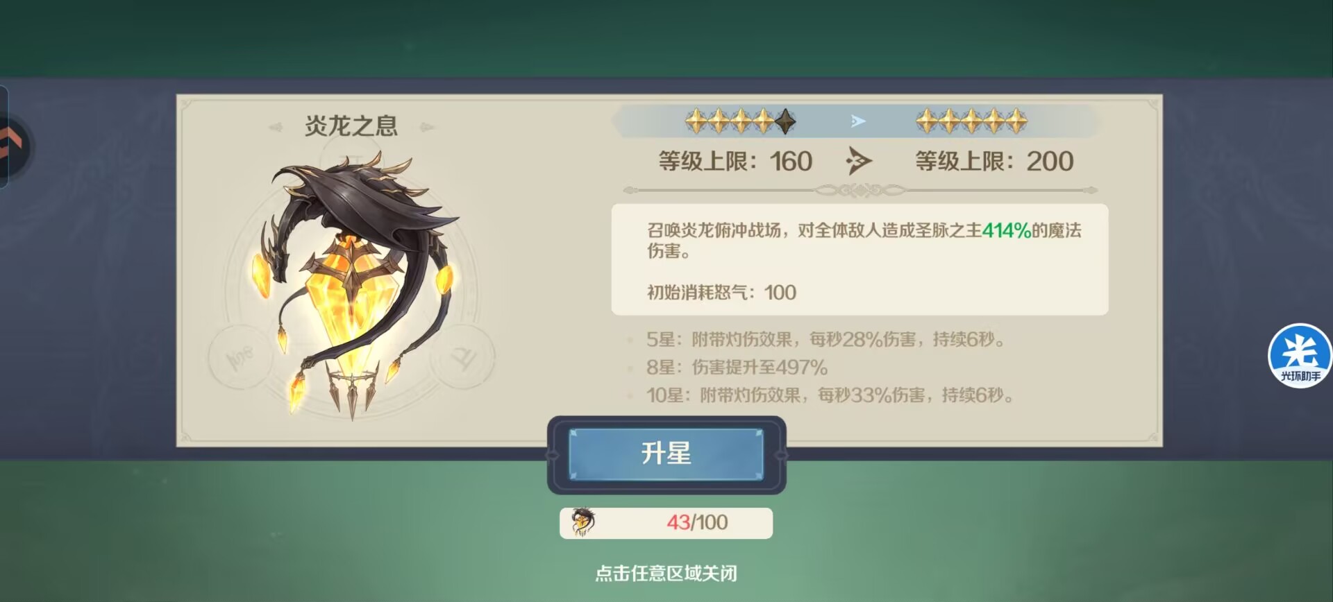 炎龙之息:可以提升灼烧队的回怒速度,还有灼烧效果。