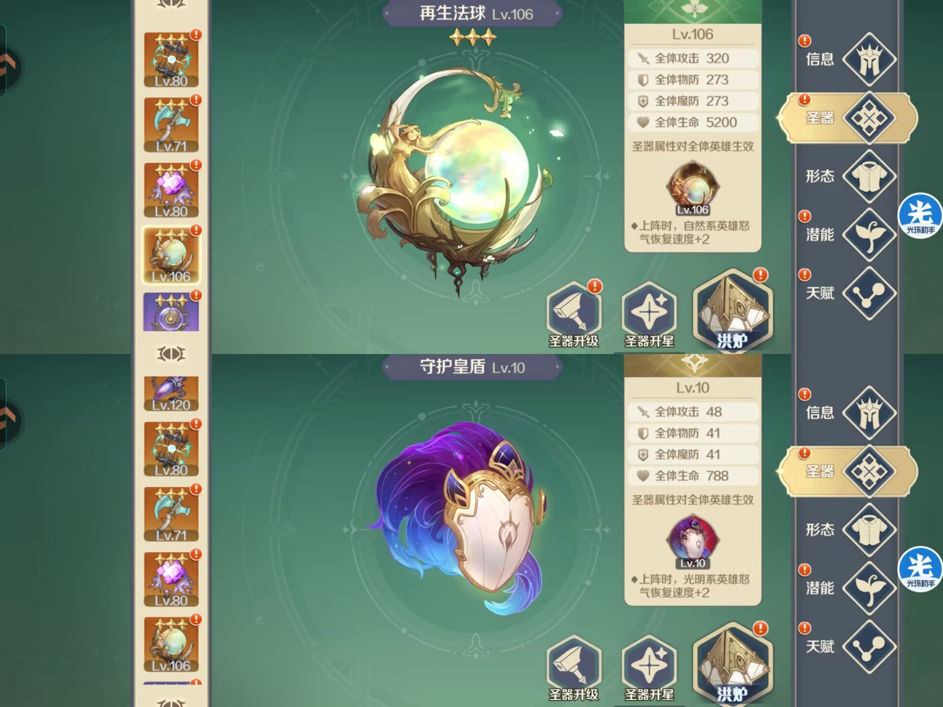 2:另外如果觉得队伍的生存不够扛不住压力。可以选择:【守护皇冠】【再生法球】这类能够提升生存续航的圣器。