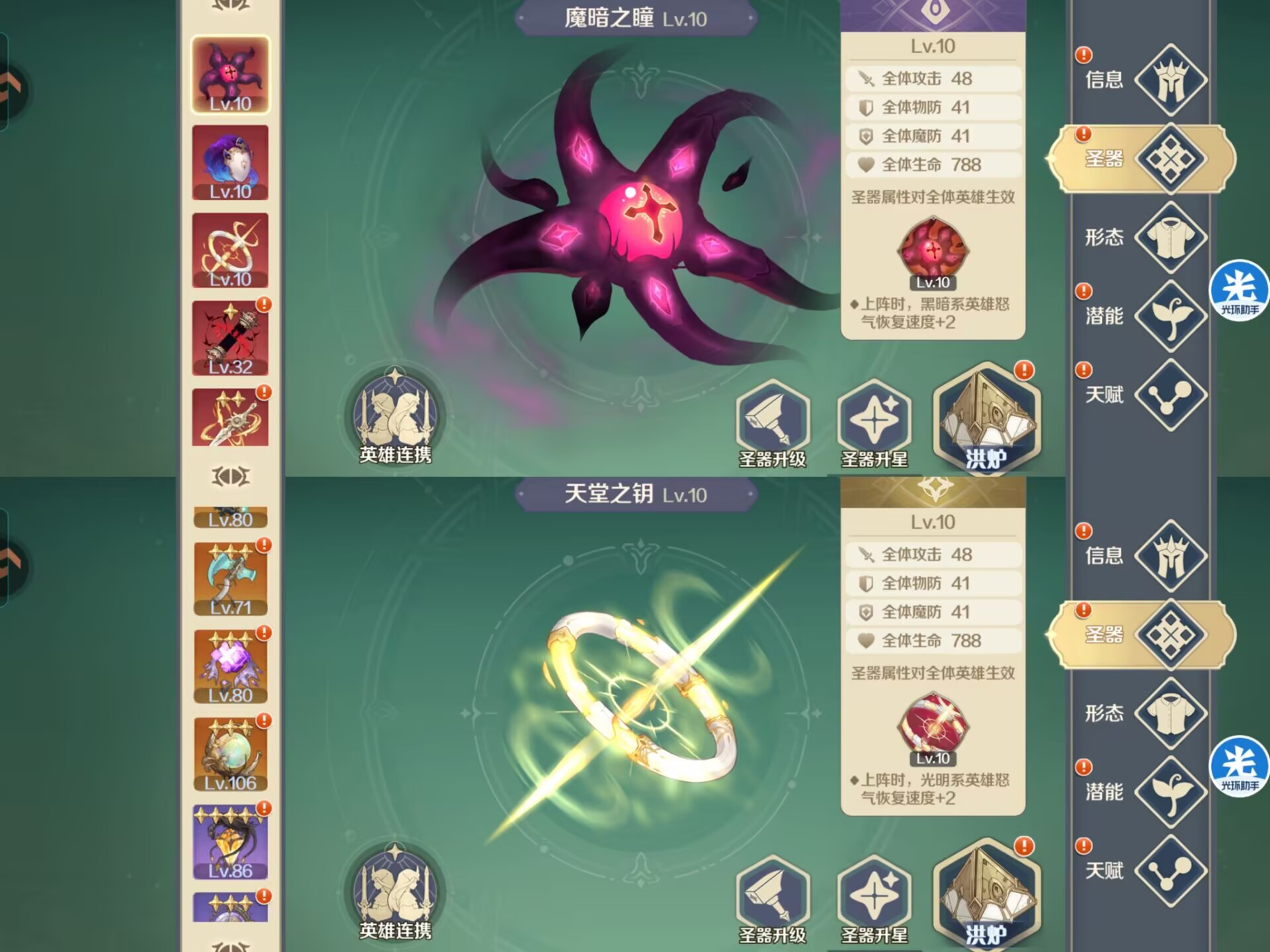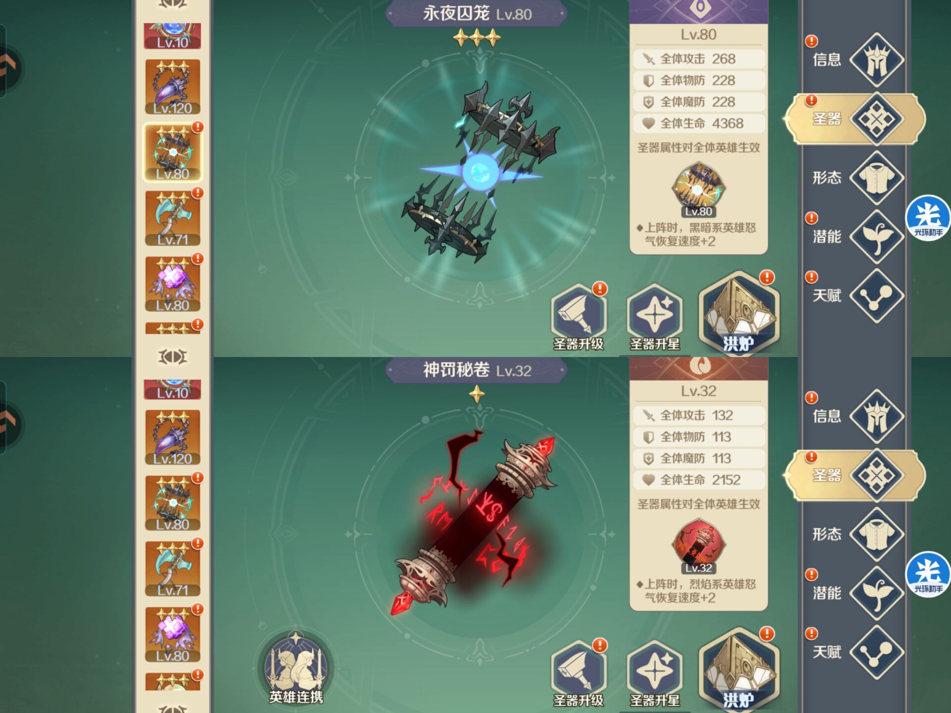 2:或者带【神罚之钥】+【永夜囚龙】也是可以的(这两个圣器星高的话可以优先带)