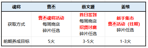 2、新区过渡阵容①(持续至开服第45天,开启蔡文姬命魂活动):