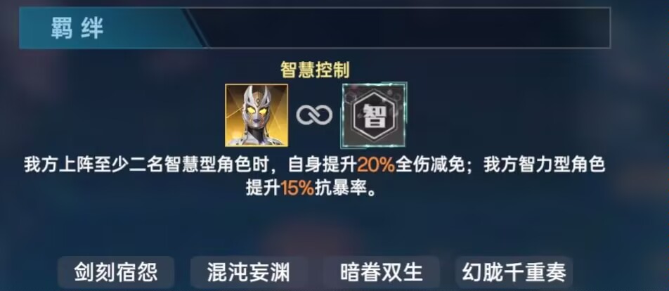 ①羁绊:需要阵容上阵2名智慧型角色生效。