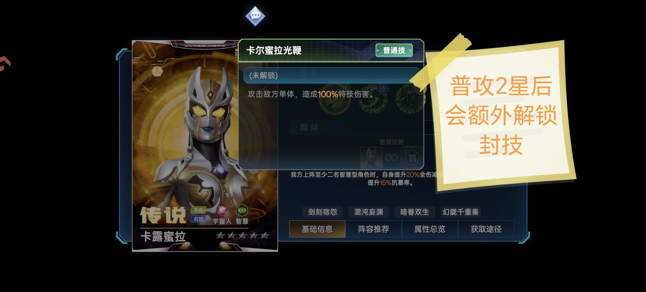 总结:【卡露密拉】达到2星以后普攻会质变。释放普攻有50%概率封技敌人,从而进一步加强自身的封技效率。