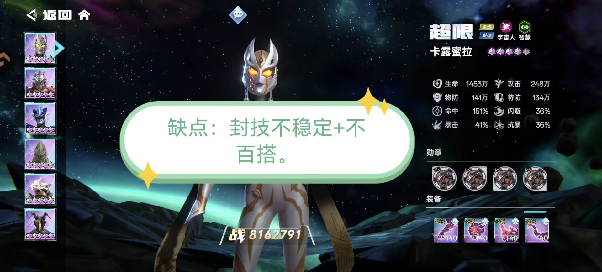 目前来看只适合搭配【宇宙人阵容】。