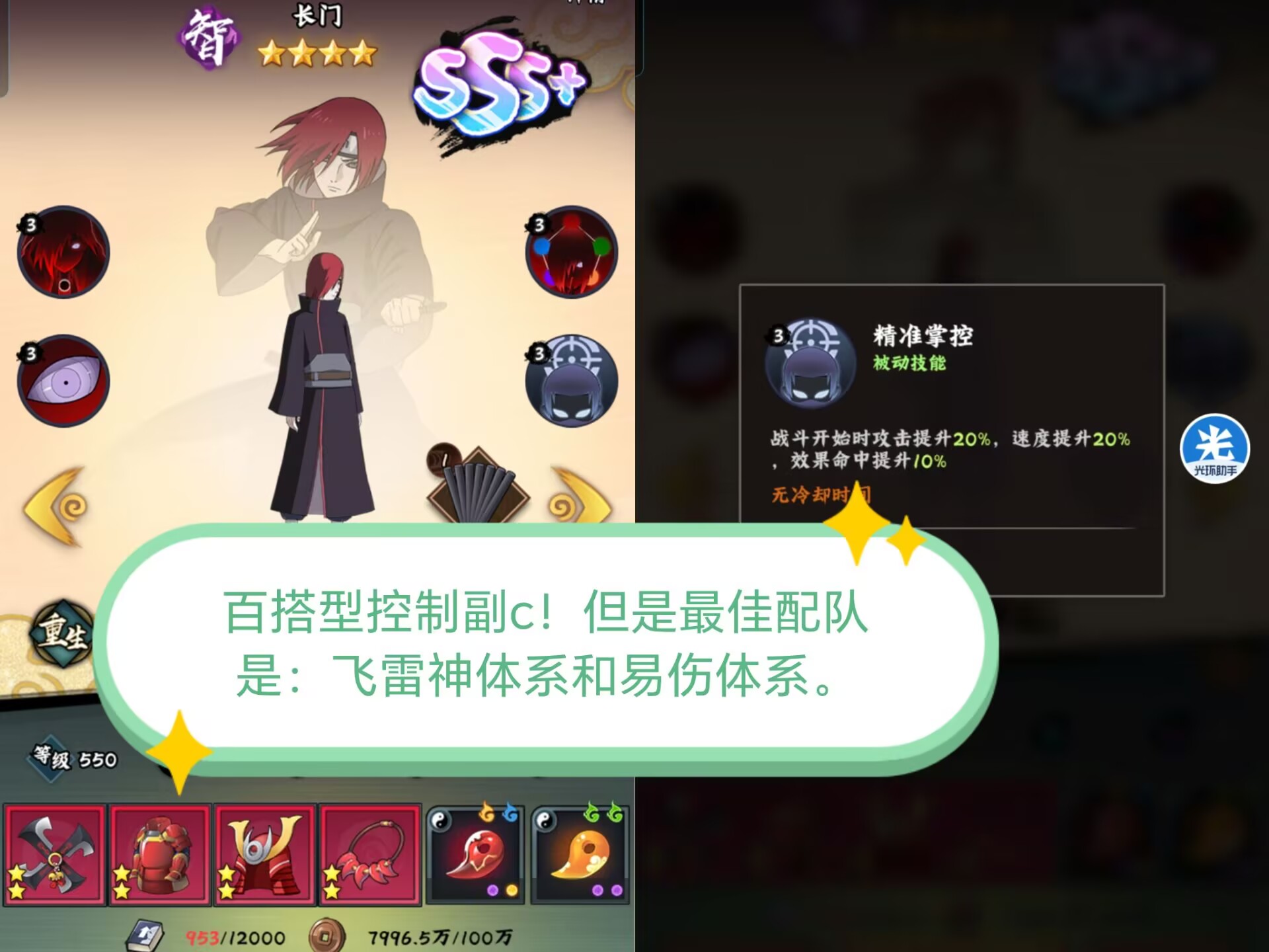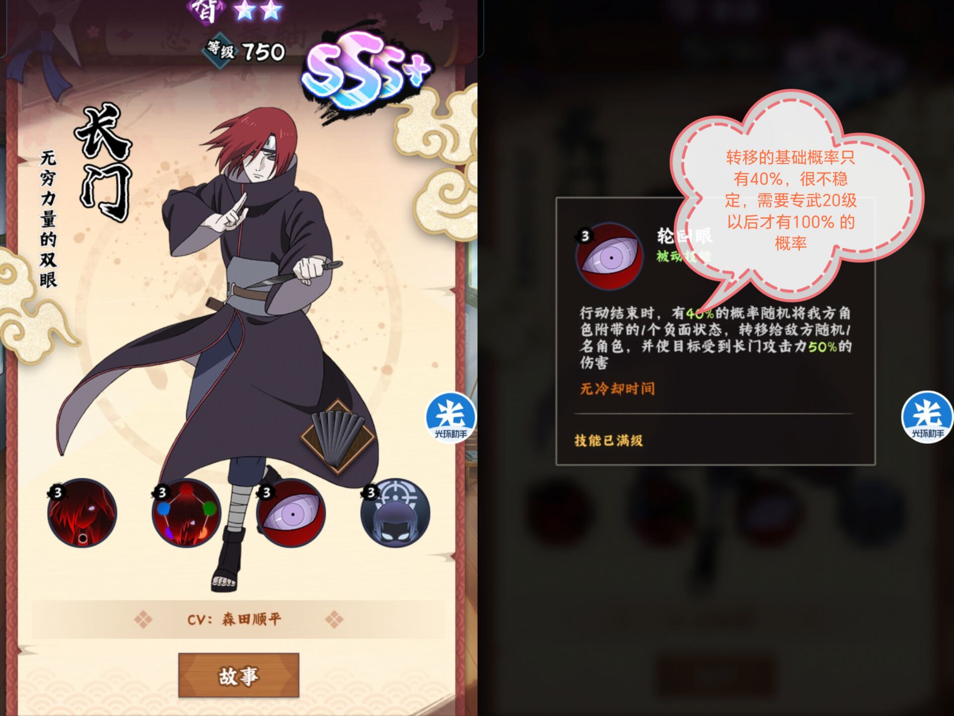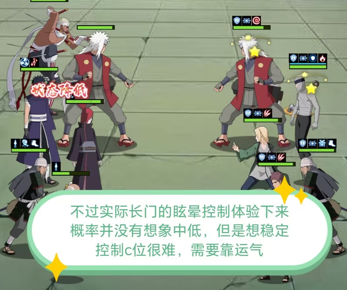 2:【长门优点】:眩晕控制和负面转移。长门自身有20%速度加成,有一定的速度优势配合提速忍者比如:【大野木】【水门】可以做到先手给全体敌人挂眩晕💫限制掉敌人首回合的行动能力,从而为我方开局建立对局优势。