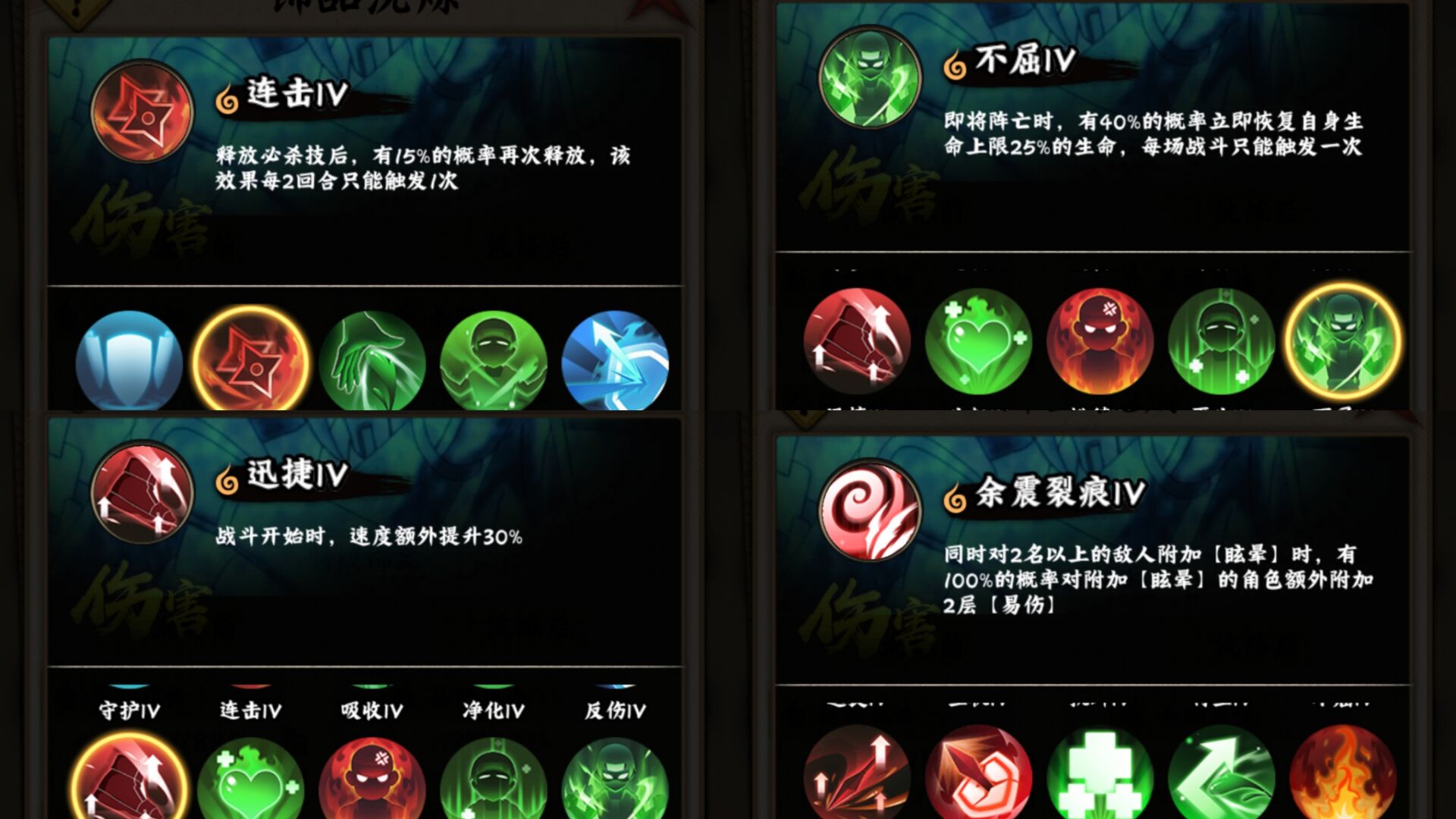四:【长门】饰品技能推荐。连击+迅捷+不屈+余震裂痕。