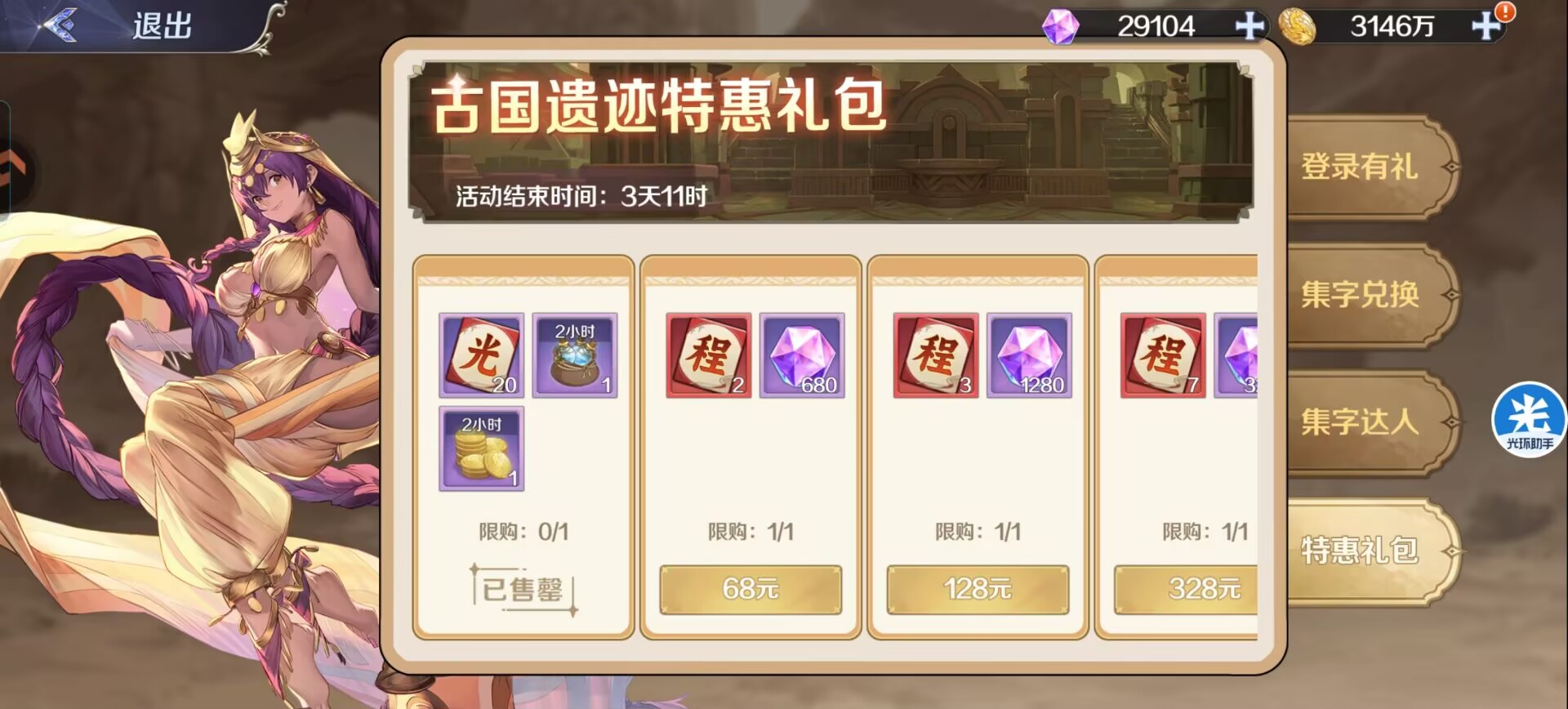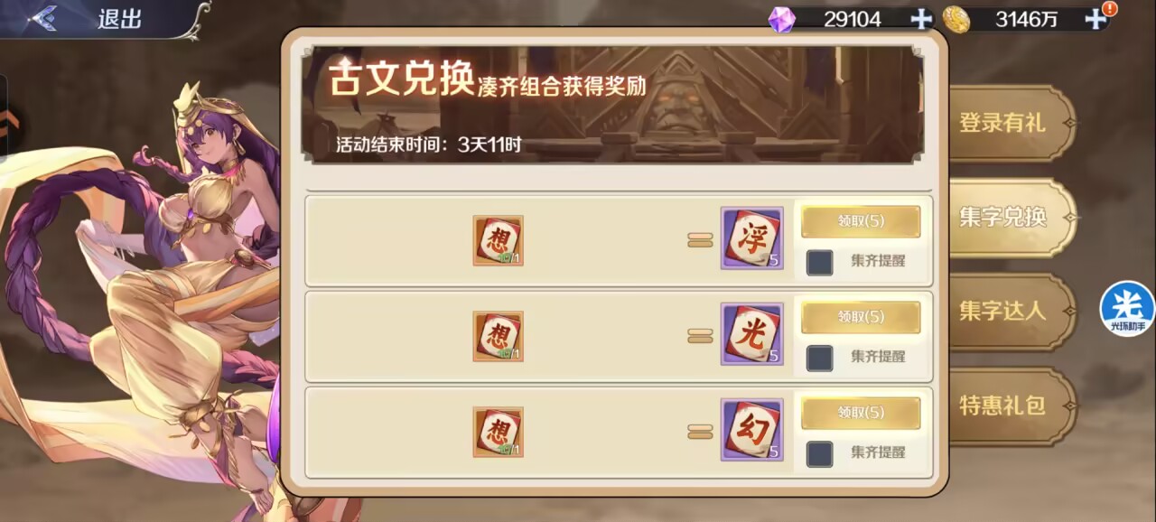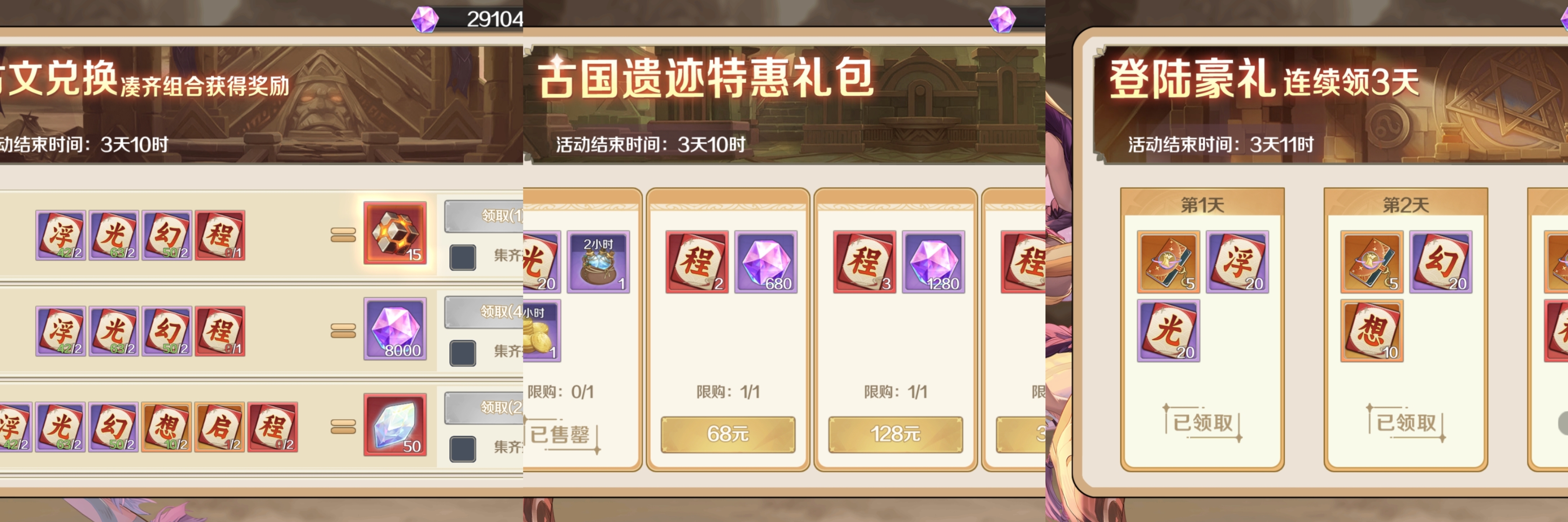 ②3天签到=20个浮、20个光、20个幻、10个想、3个启、1个程。