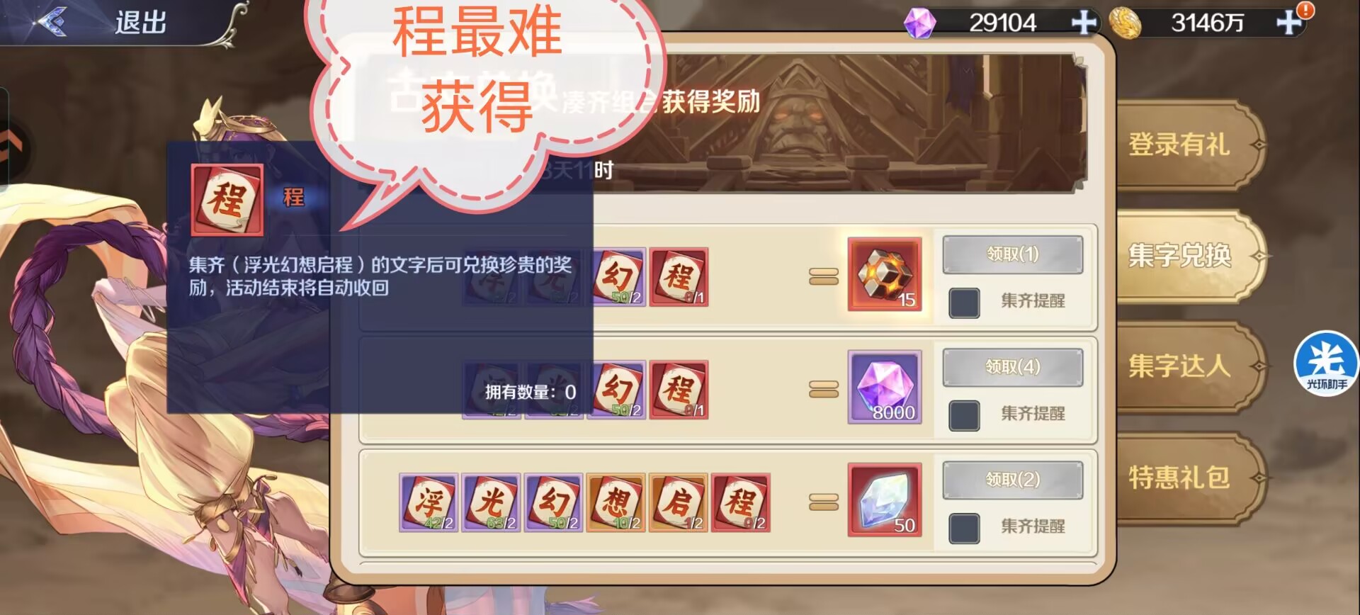 ⭐【白嫖平民玩家】兑换注意事项:因为只白嫖的话【程】这个字是只能获得1个的。