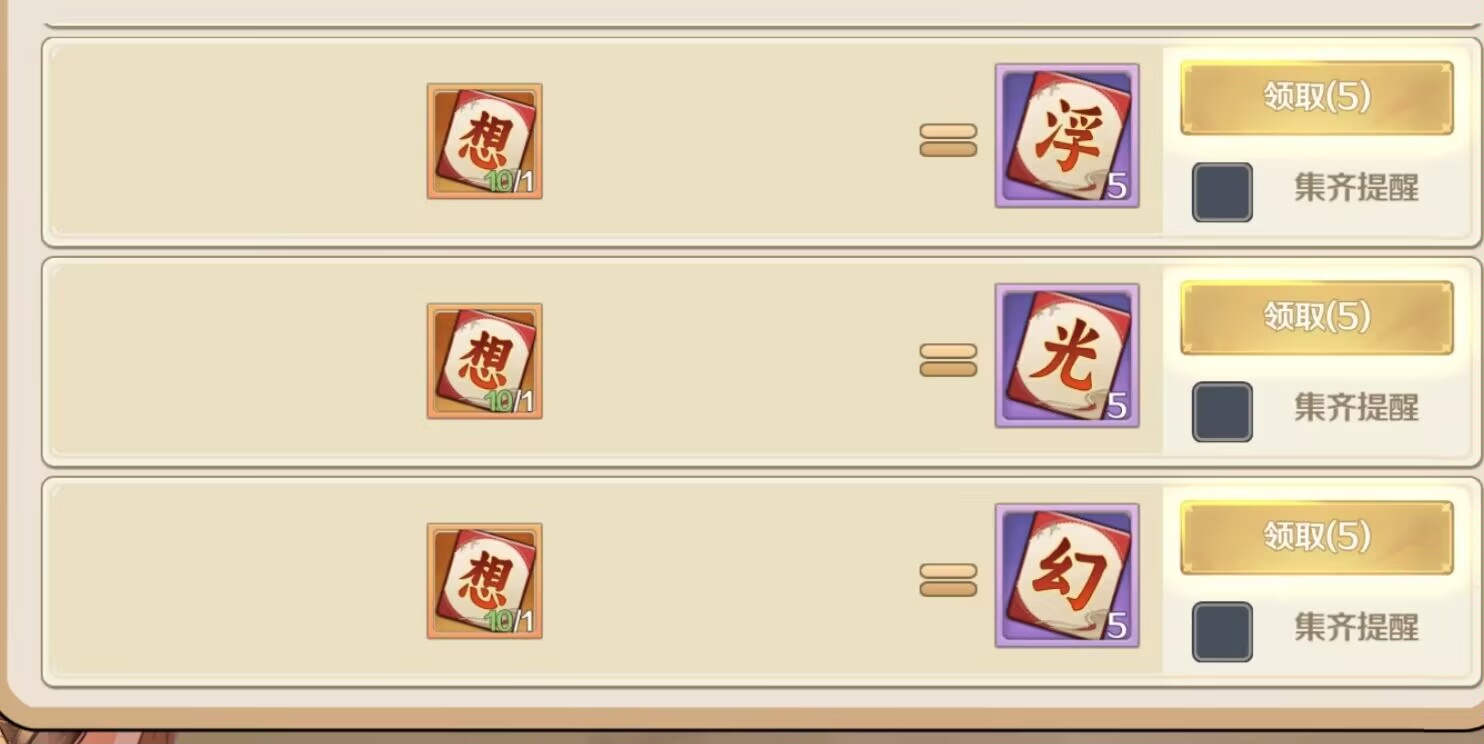 ⭐如果是【集字达人】任务每天都可以全部完成的话:每天可以多获得3个想字。