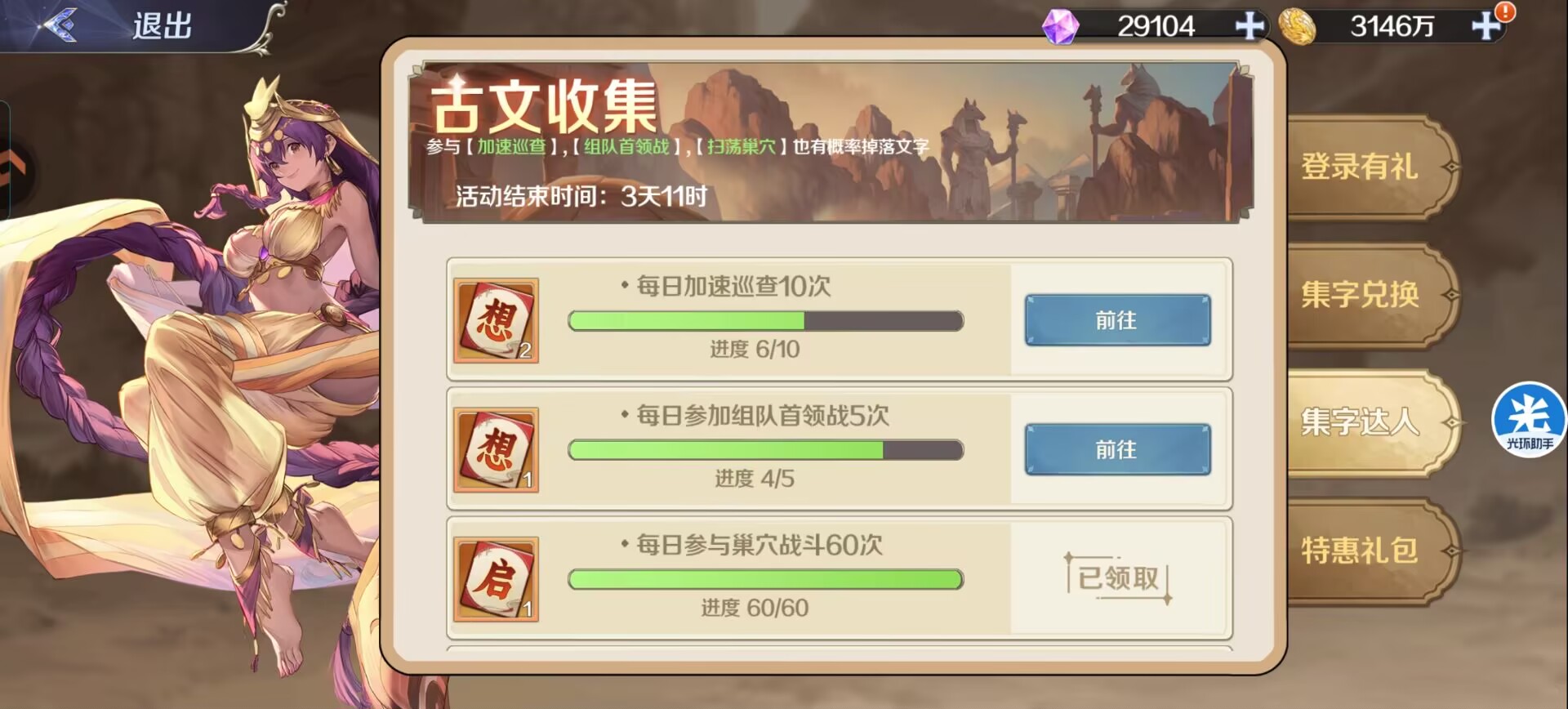 4:【古文收集】活动期间:平民白嫖玩家通过《活动任务:集字达人》可以获得多少个字?