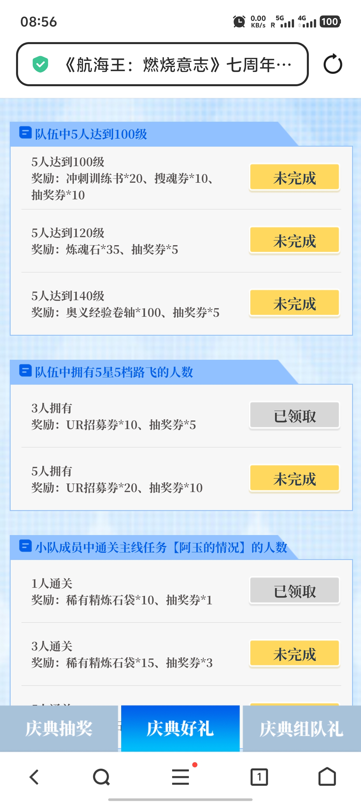 最后一天了,还有人没组队的吗?来个5星5档路飞就行,已经四个5星了,四缺一,能上百级就更好。BYVSW0