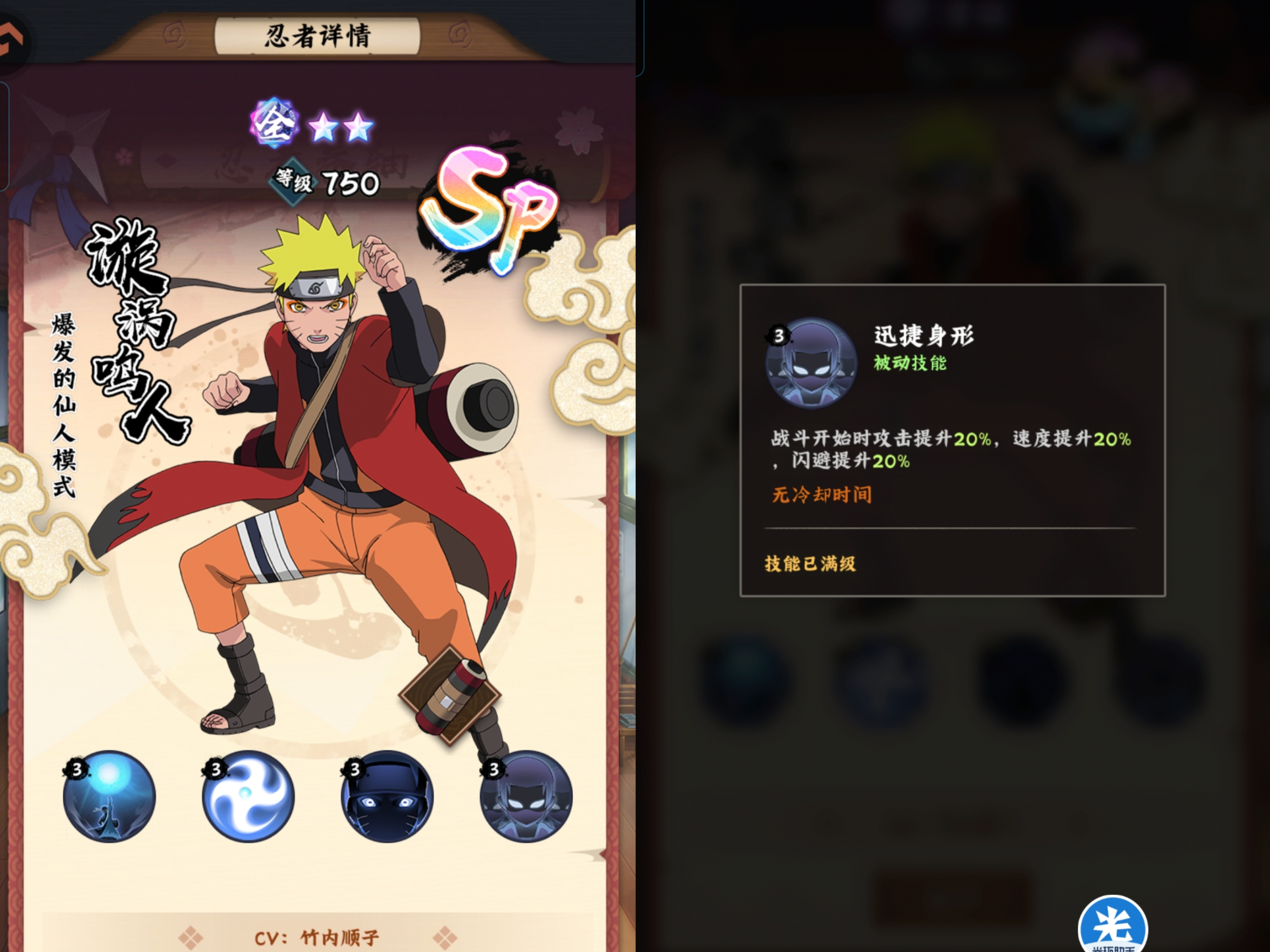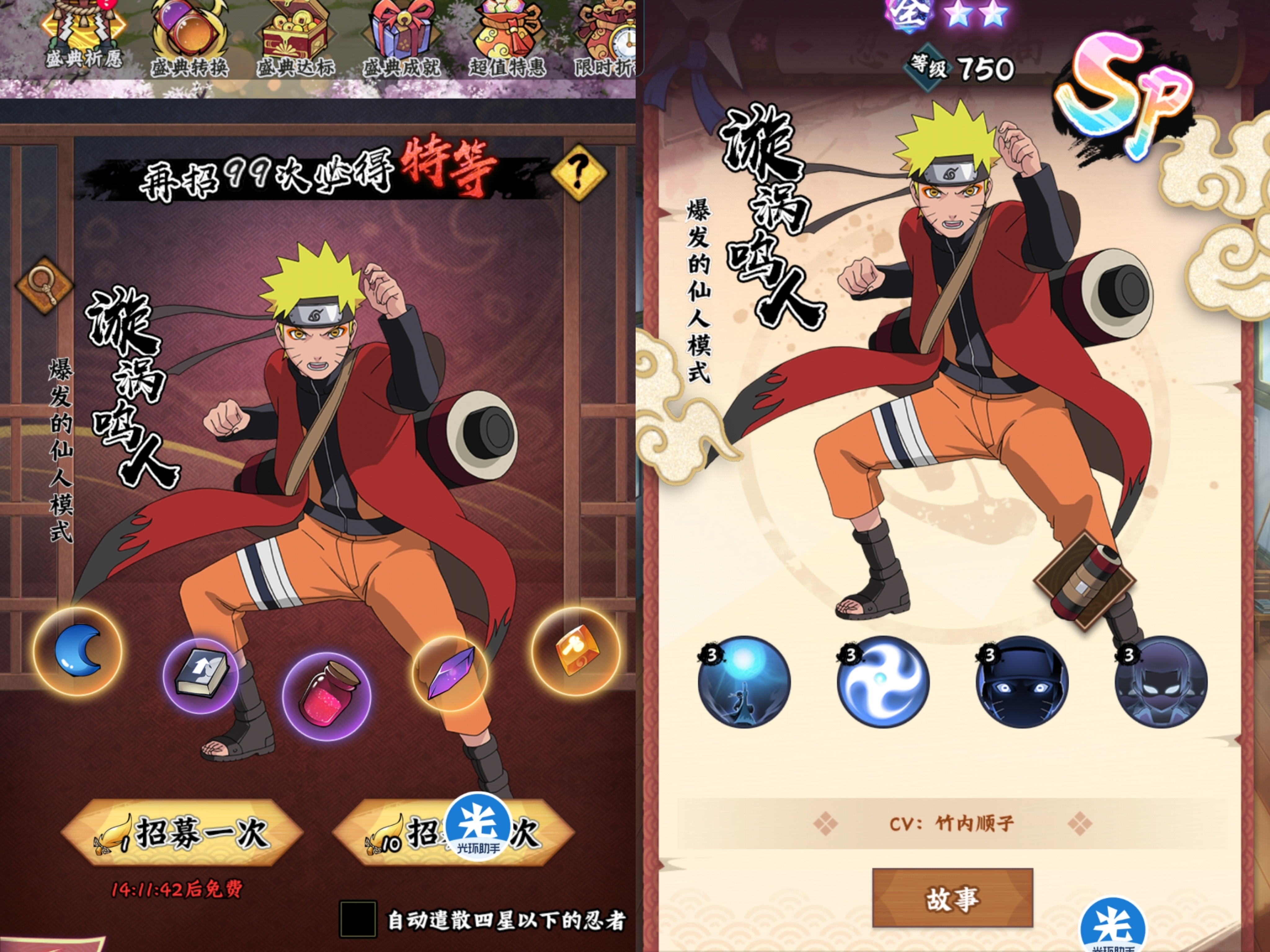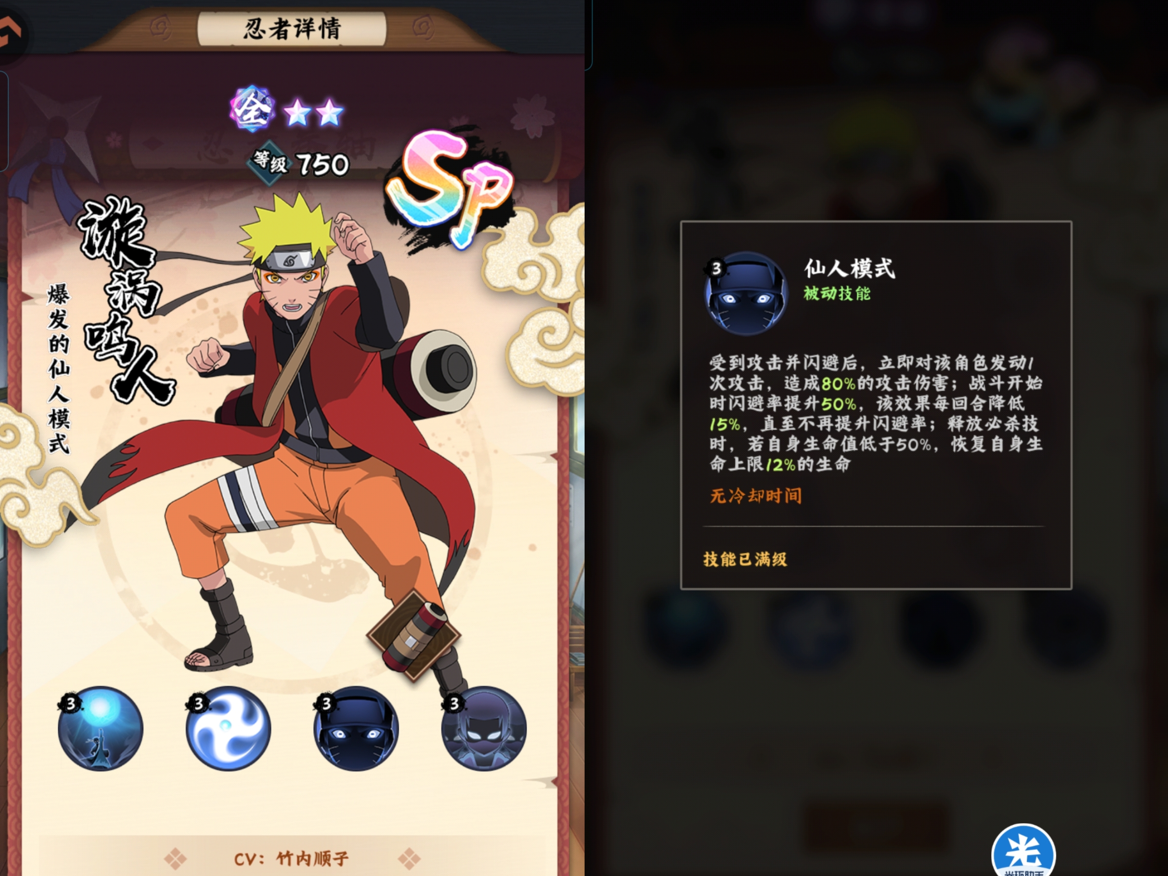来咯!来咯!目前游戏中首个SP级忍者震撼登场他就是仙人模式的鸣人。