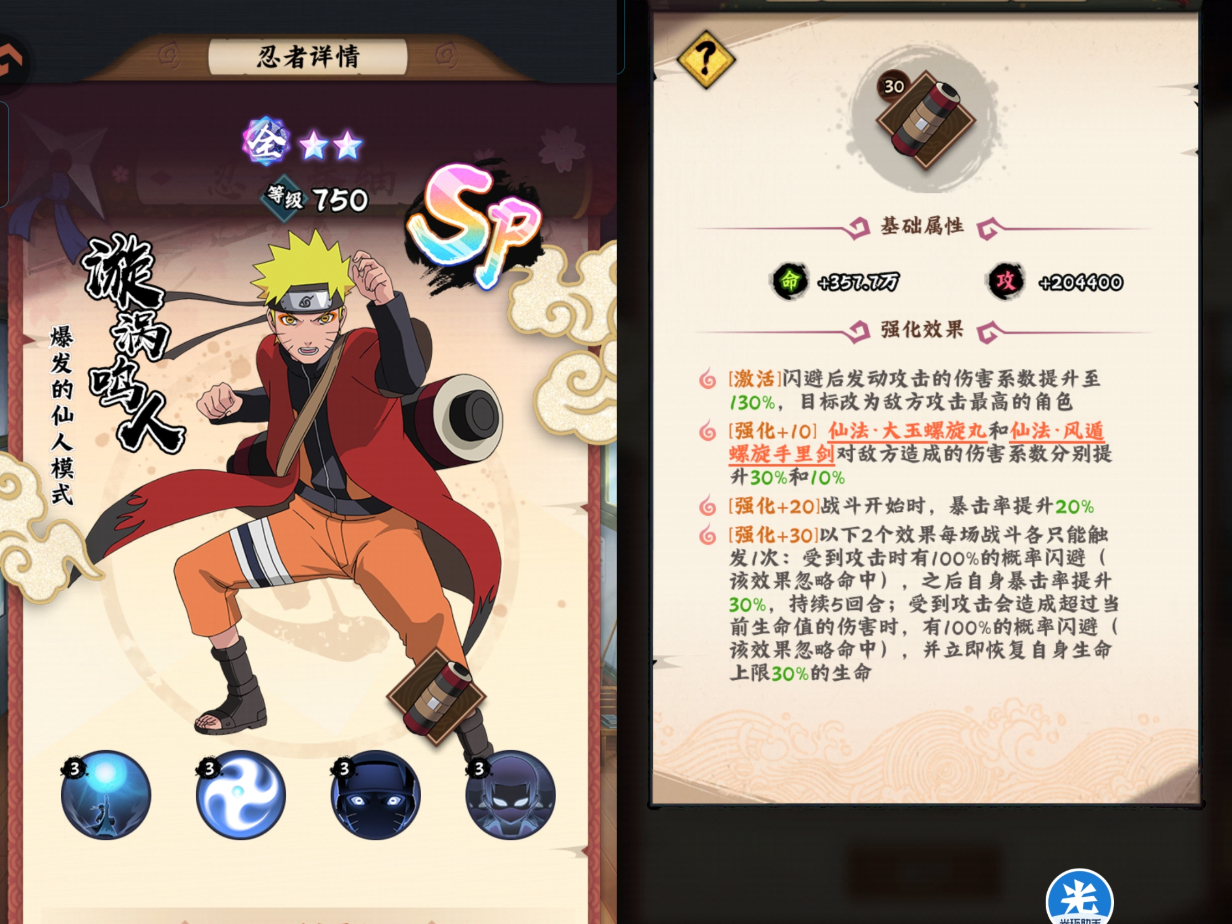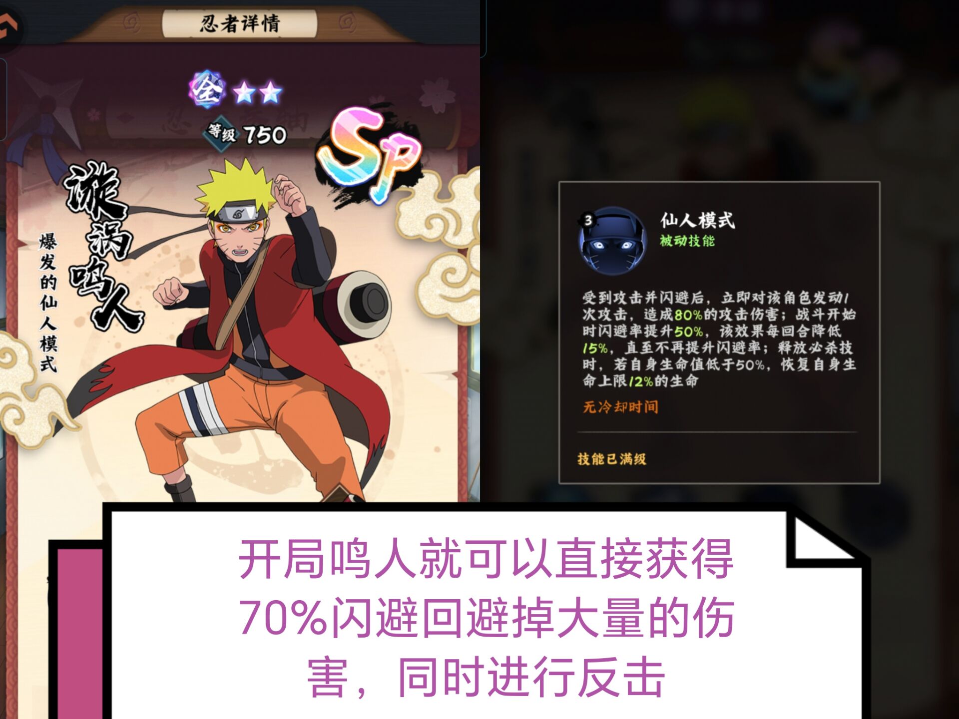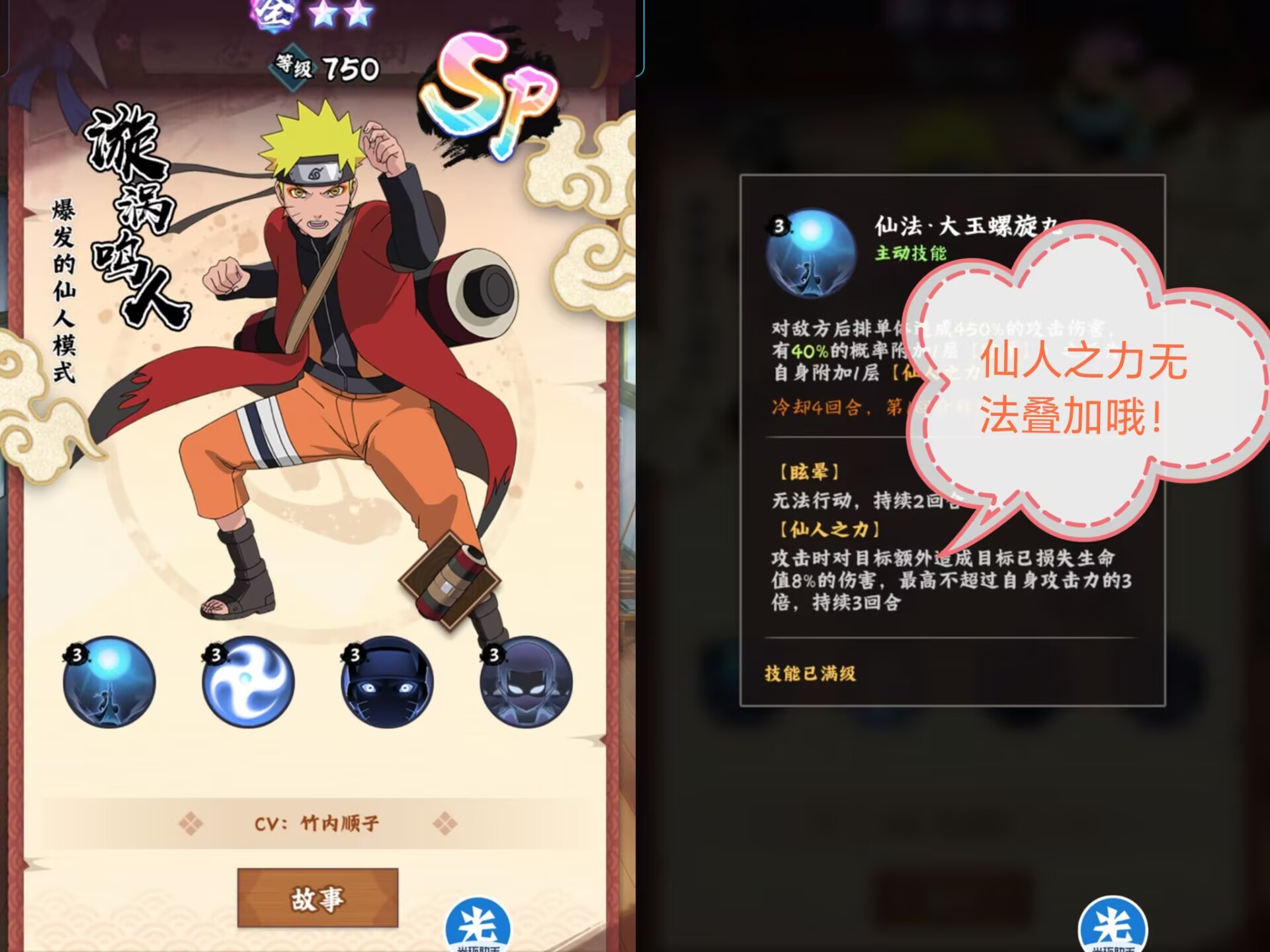 来咯!来咯!目前游戏中首个SP级忍者震撼登场他就是仙人模式的鸣人。
