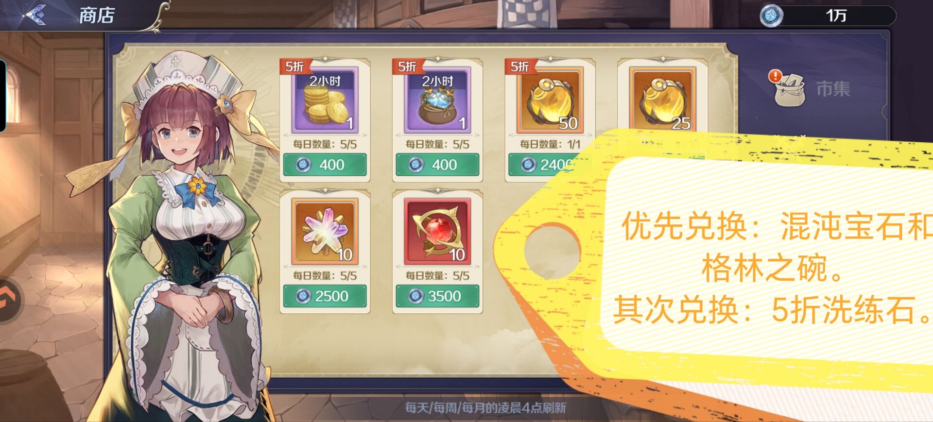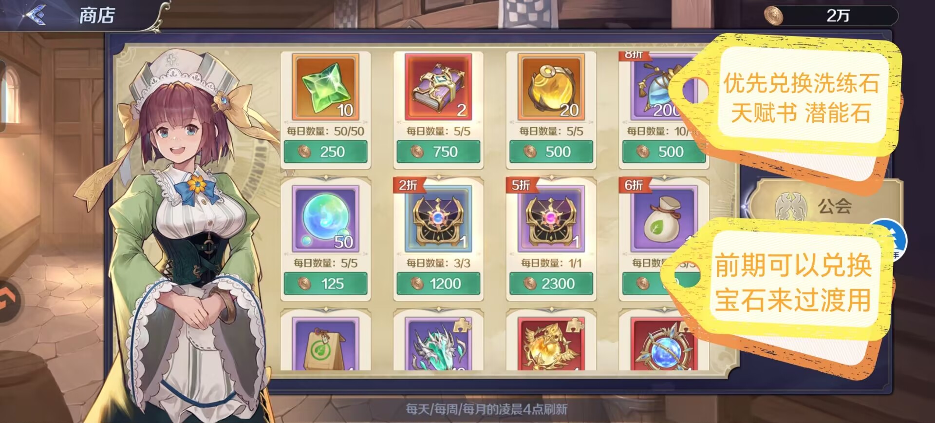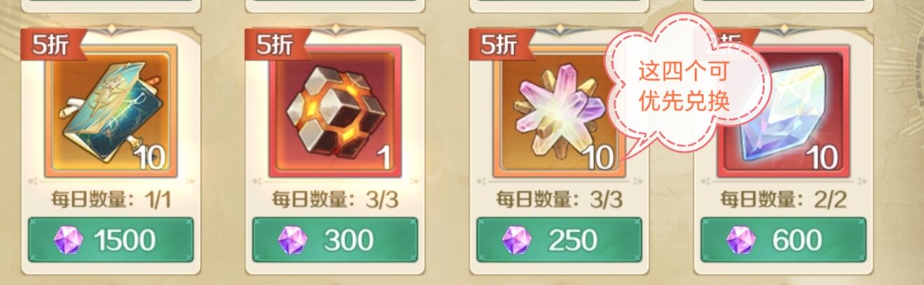 1:优先兑换:潜能石、天赋书、洗练石,这三种能够提升战力道具的,也是需求是最高的。