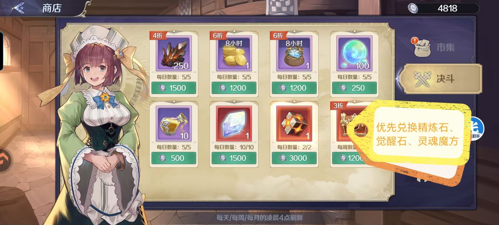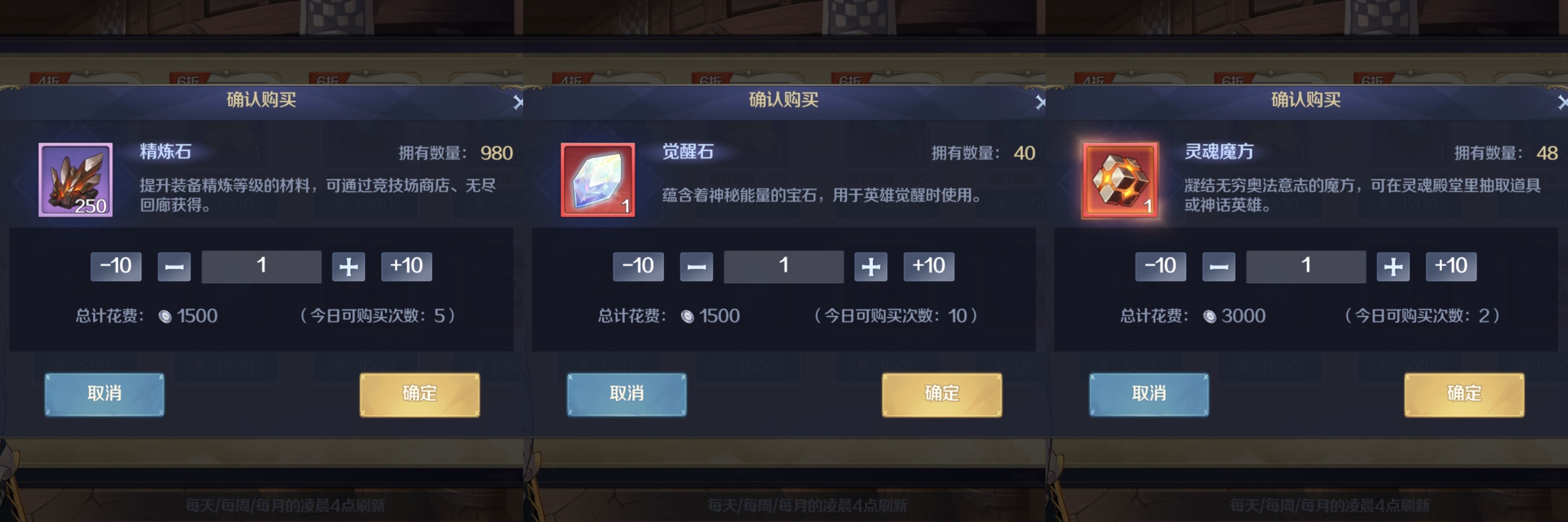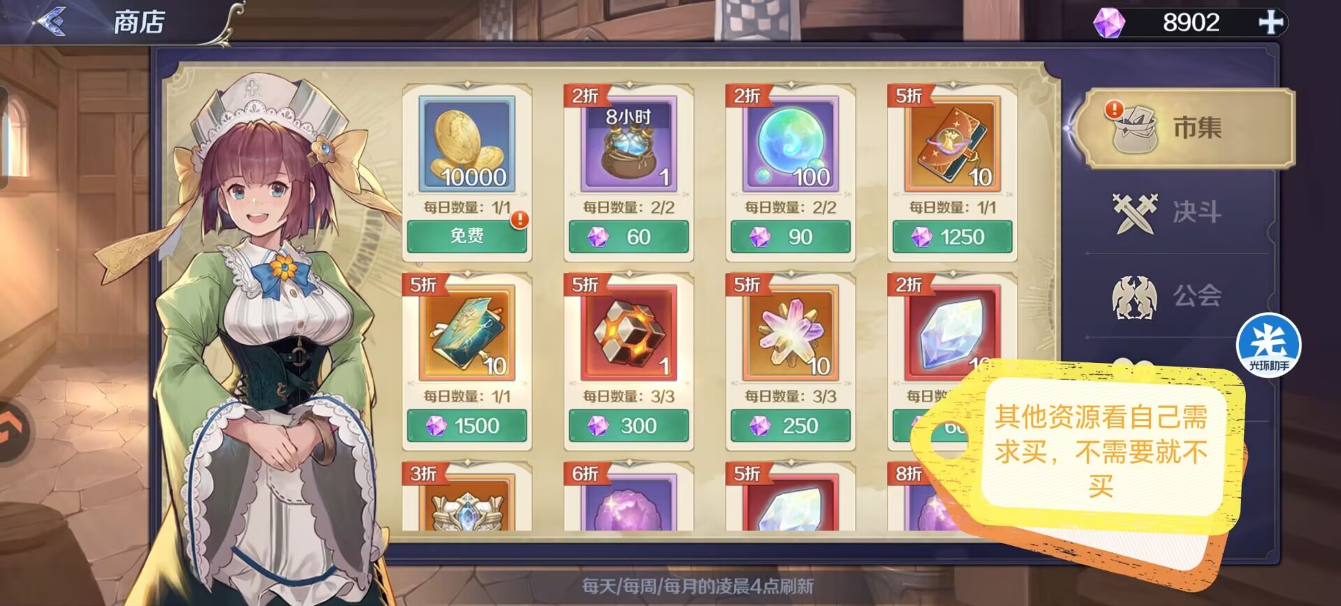 2:其他的资源看自己的需求来买吧!不需要就不买,比如像魂晶、随机史诗宝石这些不需要就别买了,浪费钻石。