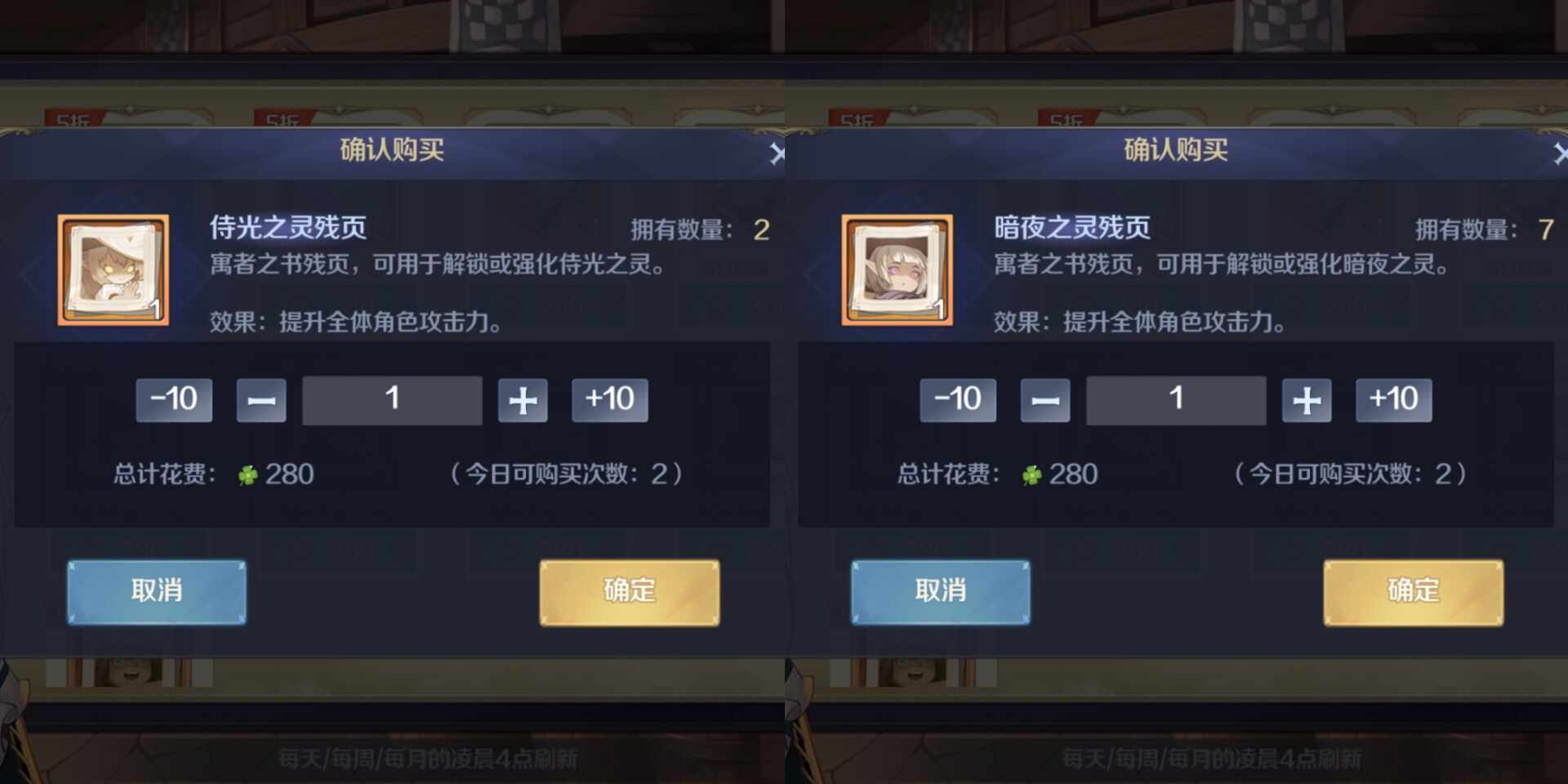 ①可以先兑换提升攻击的【待光之灵】和【暗夜之灵】这两种残页。
