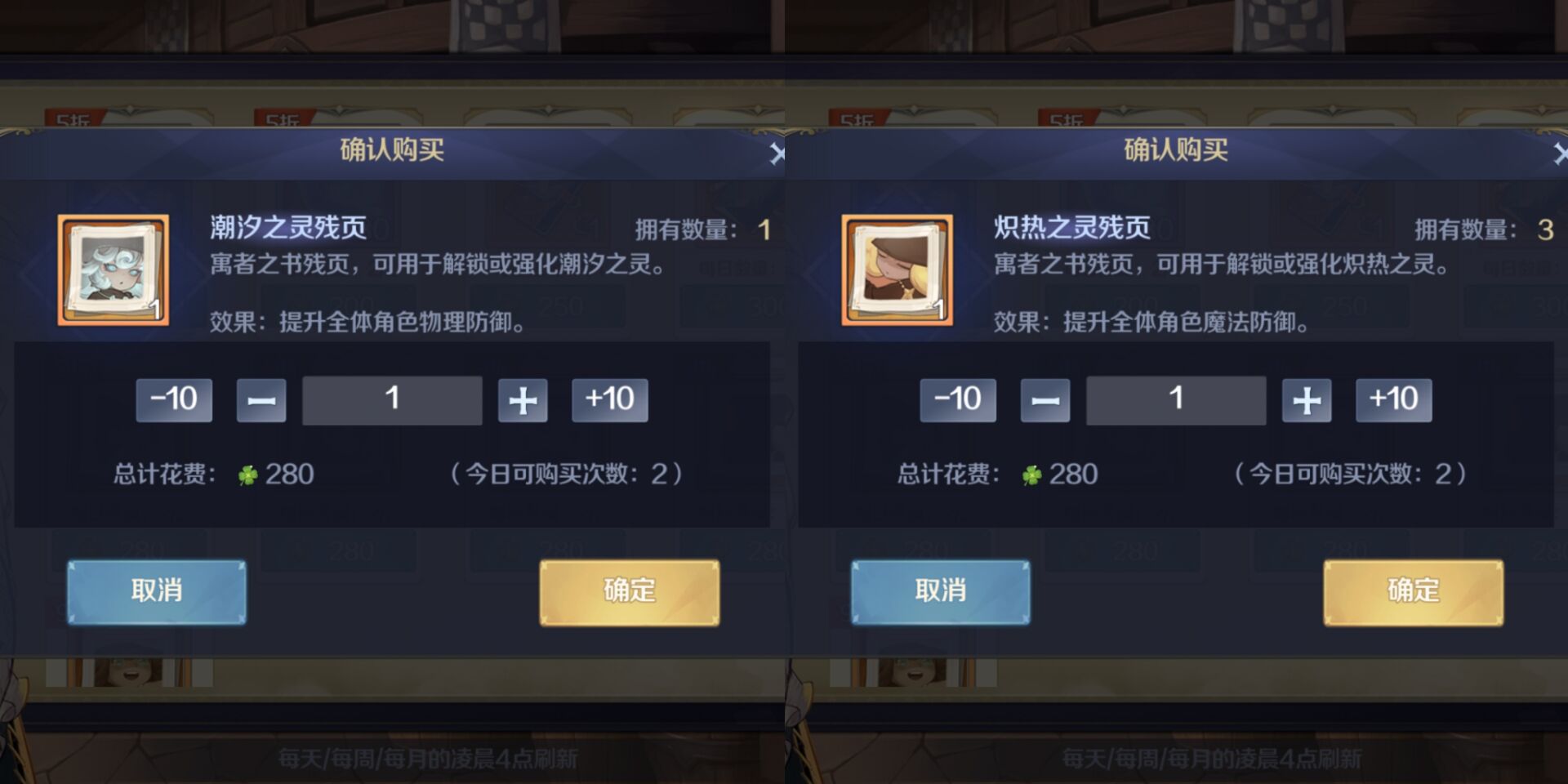 ②其次兑换【潮汐之灵】【炽热之灵】【生命之灵】这些提升防御和生命的残页。