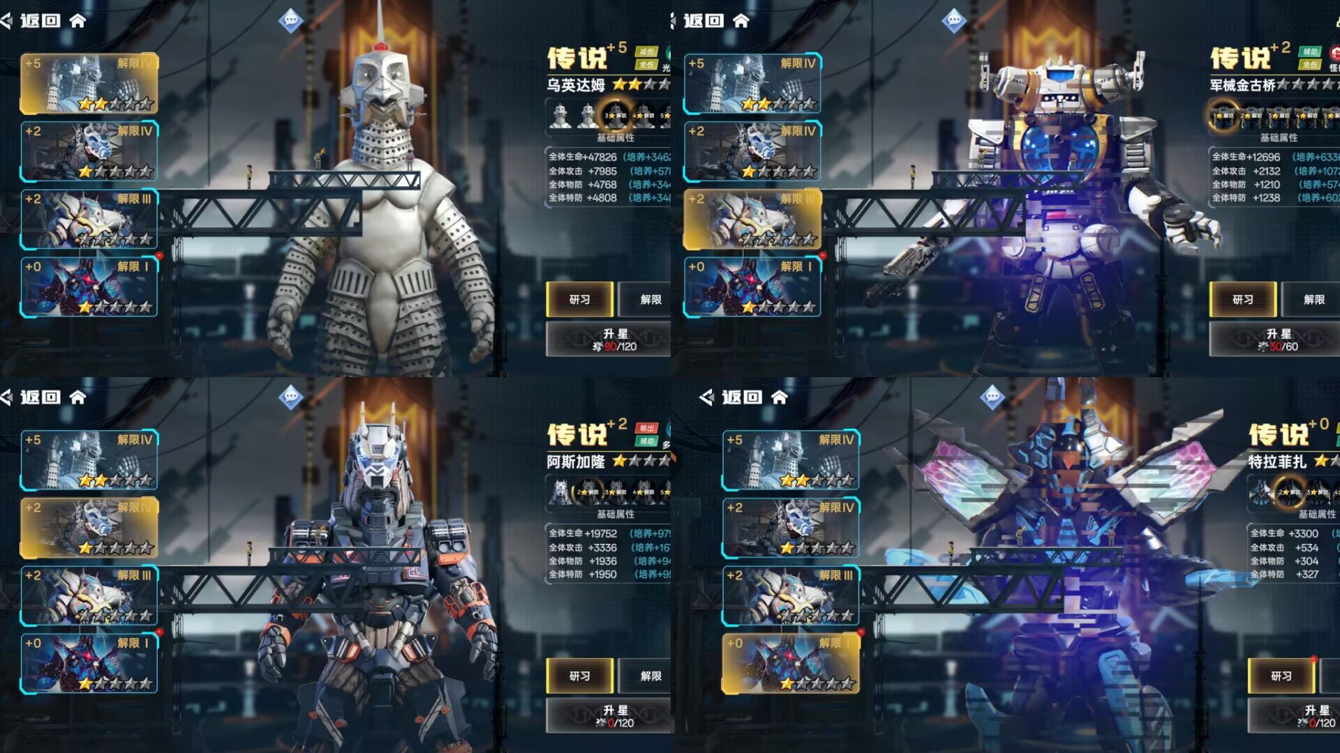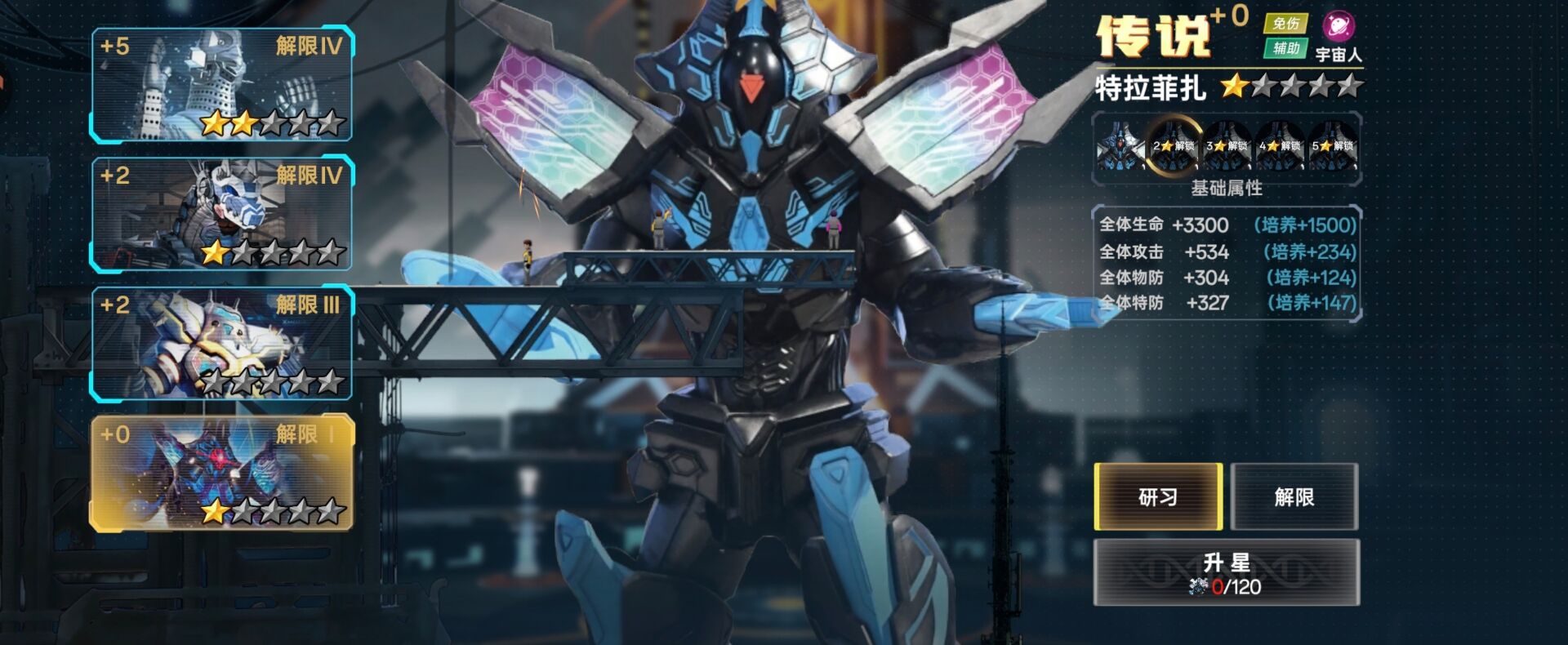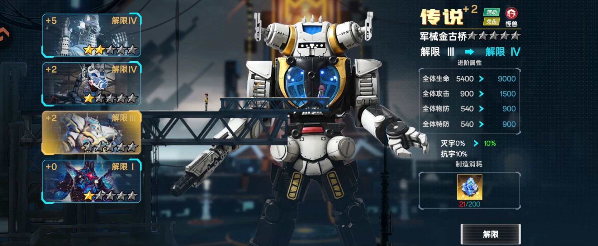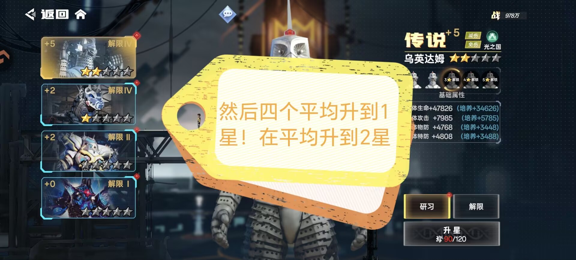 ②解限:一样可以提升我方全体属性,另外解限可以提升抗灭属性(解限需要消耗:动力源)