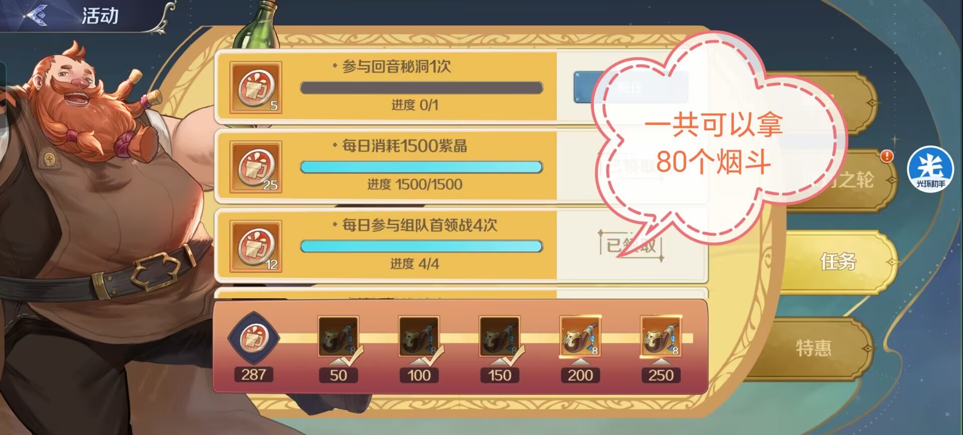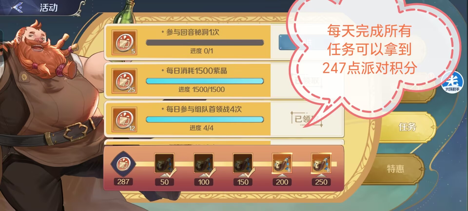 3:【活动任务】每天可以获得多少派对积分?可以拿完所有的烟斗吗?答:每天可以拿到247积分。