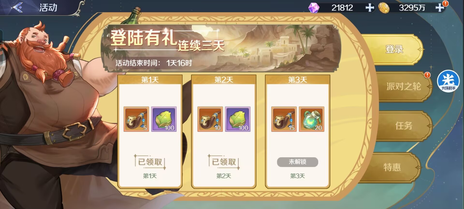 1【登录奖励】。活动期间连续登录3天一共可以获得: