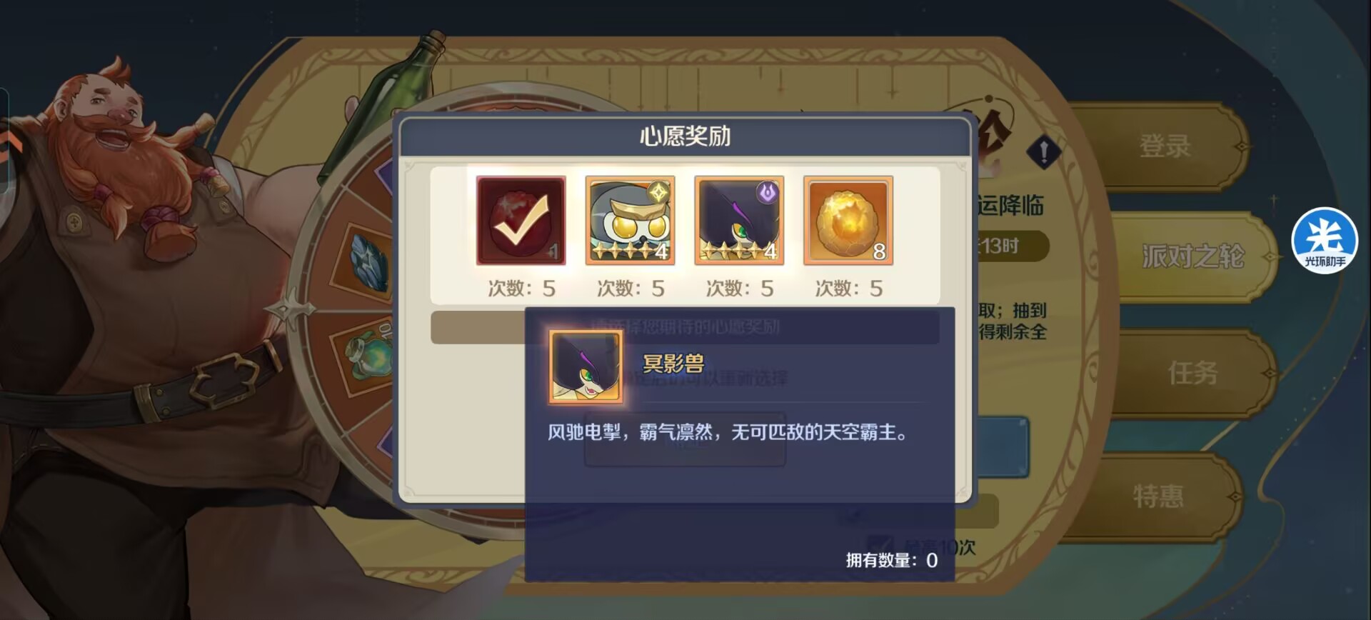 其他奖励有:觉醒石、魂晶、钻石、和灵兽的各类材料。