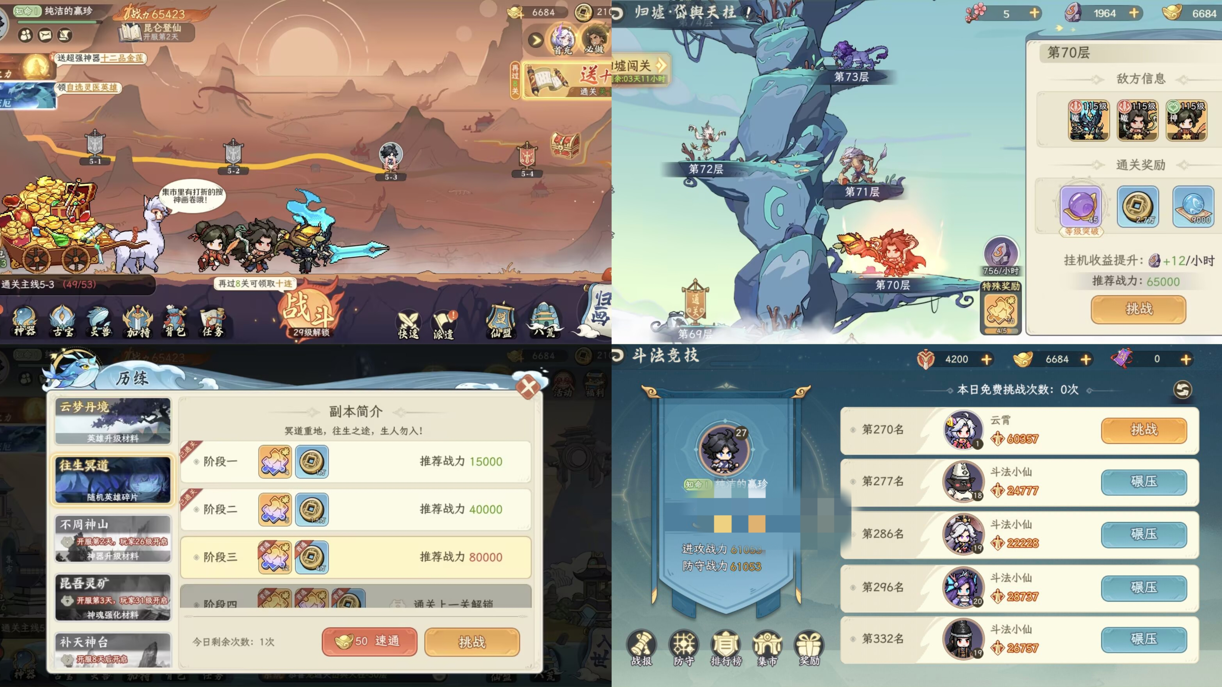 ②爬塔:尽量要推到自己当天的极限,因为这样我们获得的挂机收益更多。