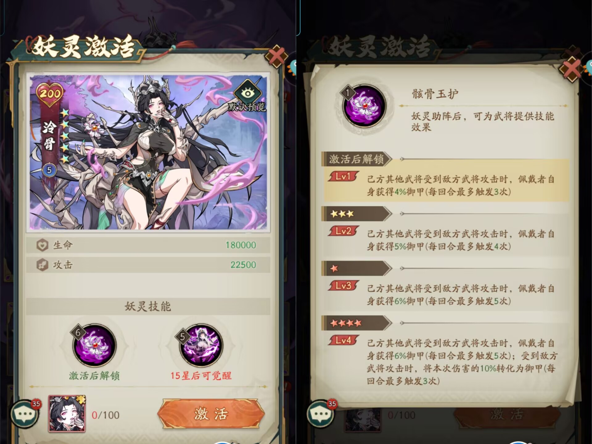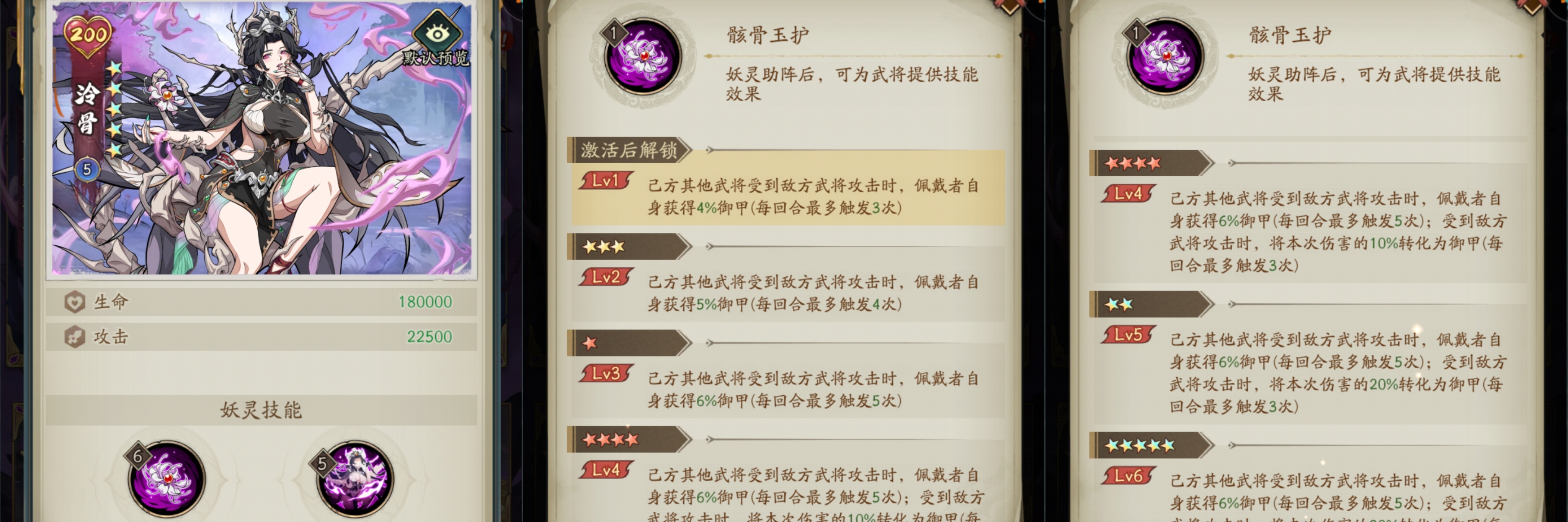 能够极大提升佩戴武将的生存,肉队必备妖灵,而且特别适合针对多动型武将。