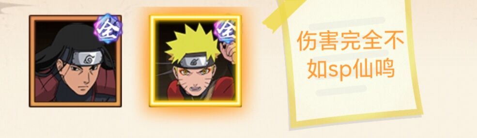 答:其实伤害方面也完全不如sp鸣人!毕竟是控制角色。