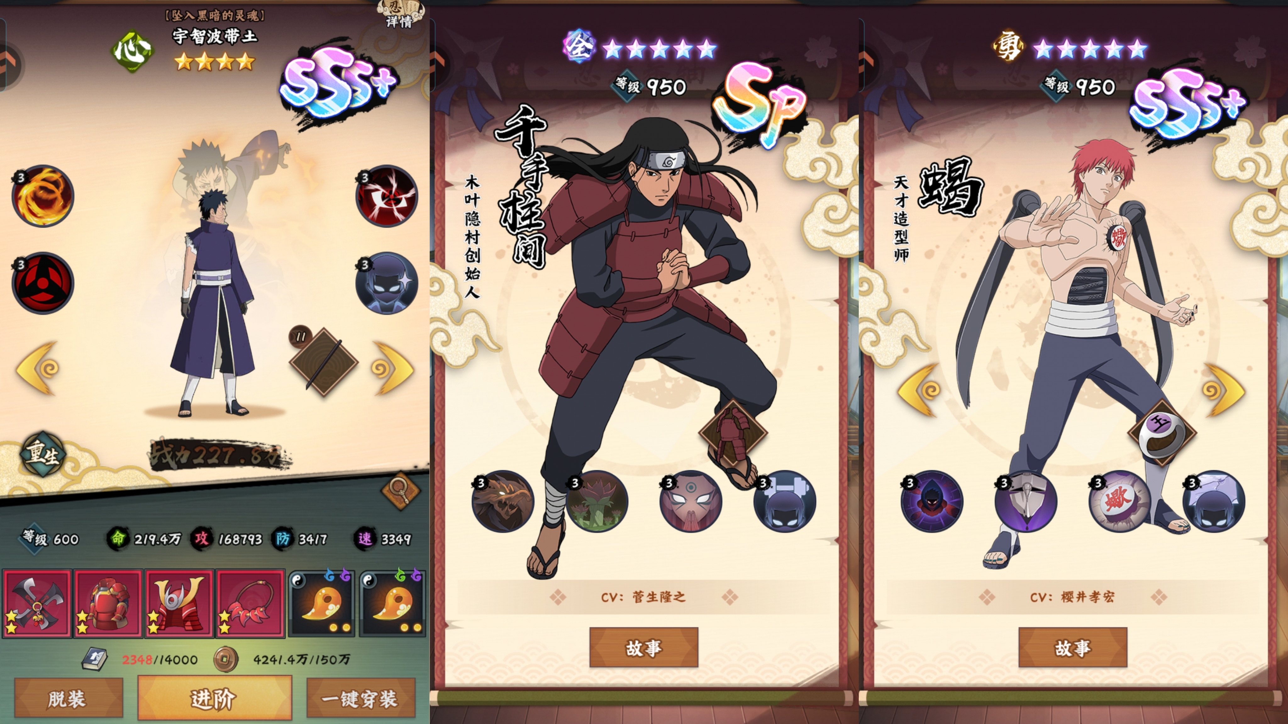扉间的技能伤害打对面没有sp忍者的玩家,只打在sss+忍者身上挺疼的,因为sp忍者数值碾压。