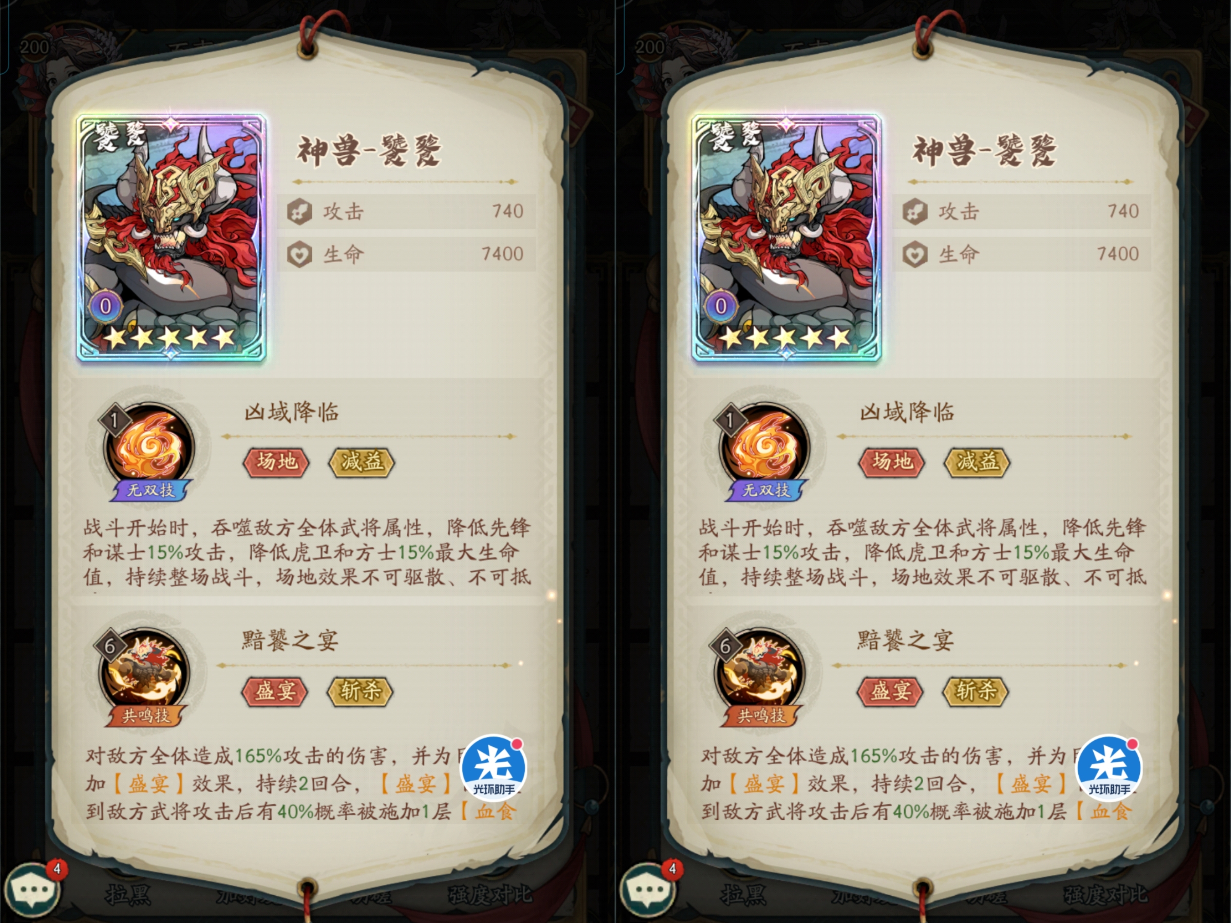要知道饕餮的斩杀是可以无视:凤凰、马云禄的保命效果包括奇谋潜龙的保命都是可以被斩杀的。