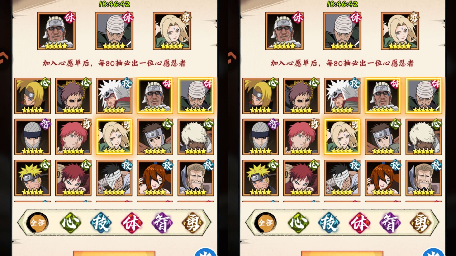 ①前期心愿可以选择:奇拉比+三船+纲手(走易伤队思路开局)。