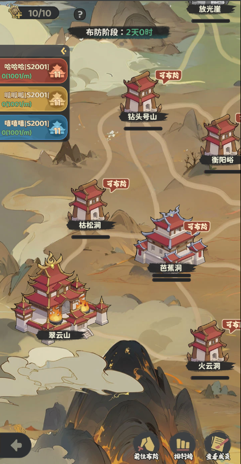2、掌门、长老可在布防期间将门派成员的队伍布防到己方阵营的城池![]()