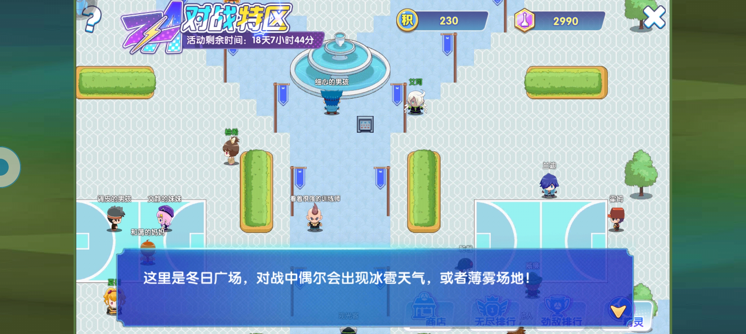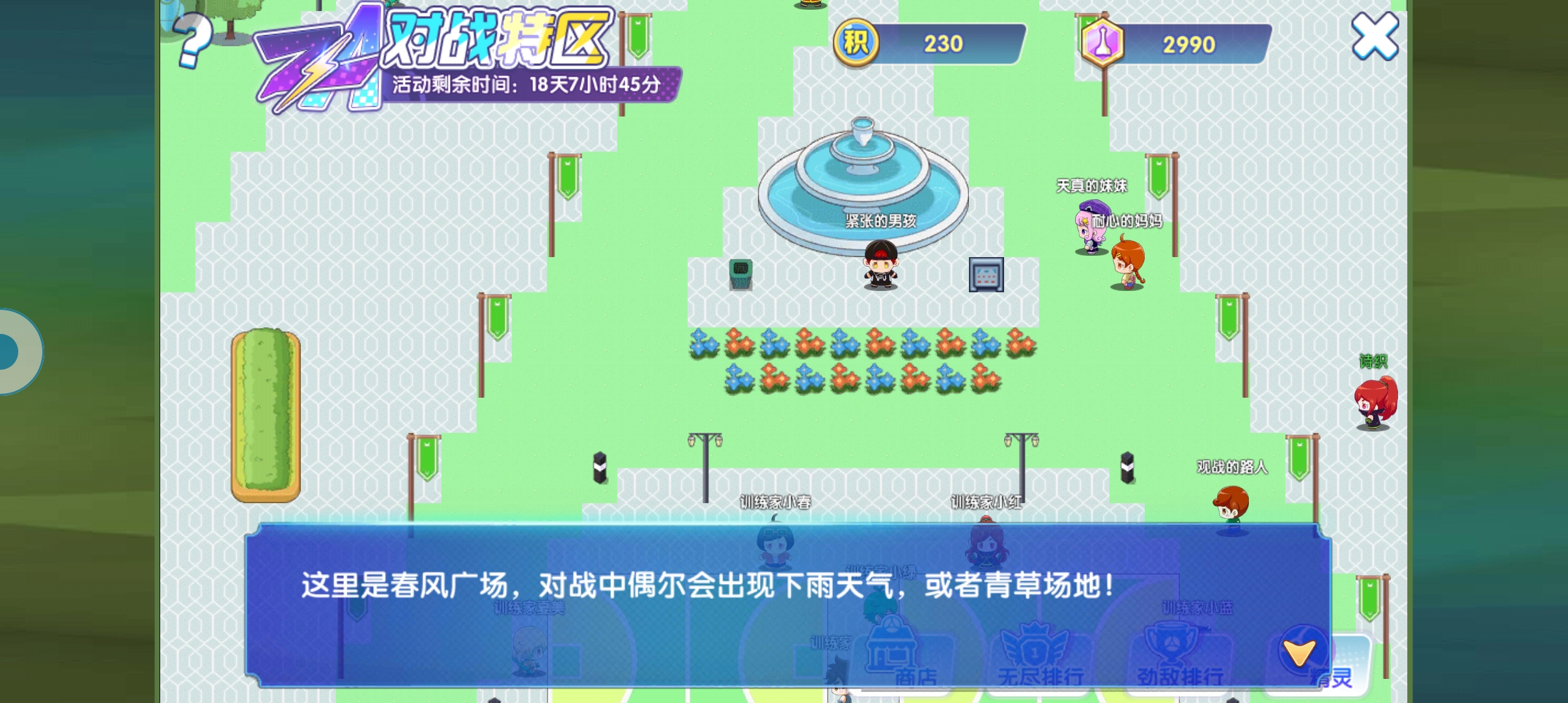 至于其他四个分区的话,也是有说法的因为虽然说有一些精灵的特性,需要天气的帮助,但是我们没有开天气的队友,该怎么办呢?答案就可以挑选合适的场所去挑战,不过最重要的还是要挑选双倍,比如说上方两个分广场,春风和赤夏是拥有双倍积分的,而这种积分就是我们可以去商店进行兑换东西的货币,不过至于商店内容会在结尾进行讲解,所以说,选择合适的天气或者是场地之前最重要的还是要首选双倍积分场地,那么下面就给大家看一下这四个分场地有什么特殊的天气和场地。